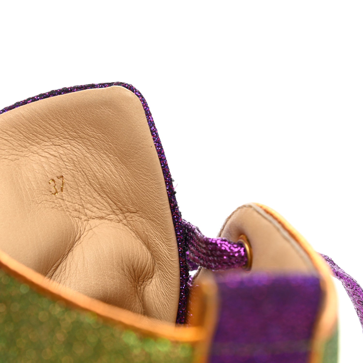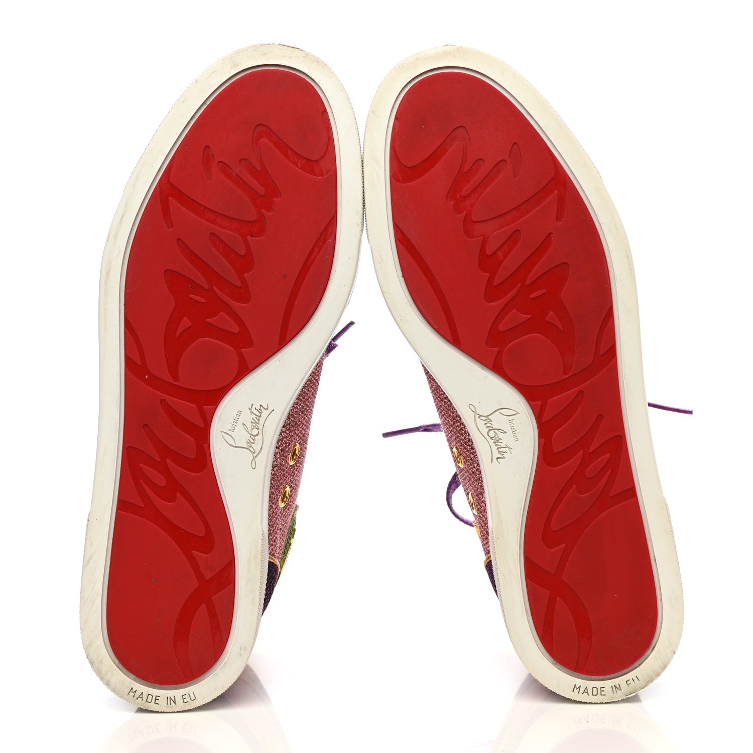 This is an authentic pair of CHRISTIAN LOUBOUTIN Bip Bip Glitter Womens Orlato Flat Sneakers 37 in Multicolor. These stylish sneakers are crafted of Multicolor glitter like fabric with gold fabric trim. These shoes feature white rubber soles and purple shoelaces.Follow this item for alerts. Christian Louboutin is a registered trademark of Christian Louboutin. FASHIONPHILE is not affiliated with Christian Louboutin.