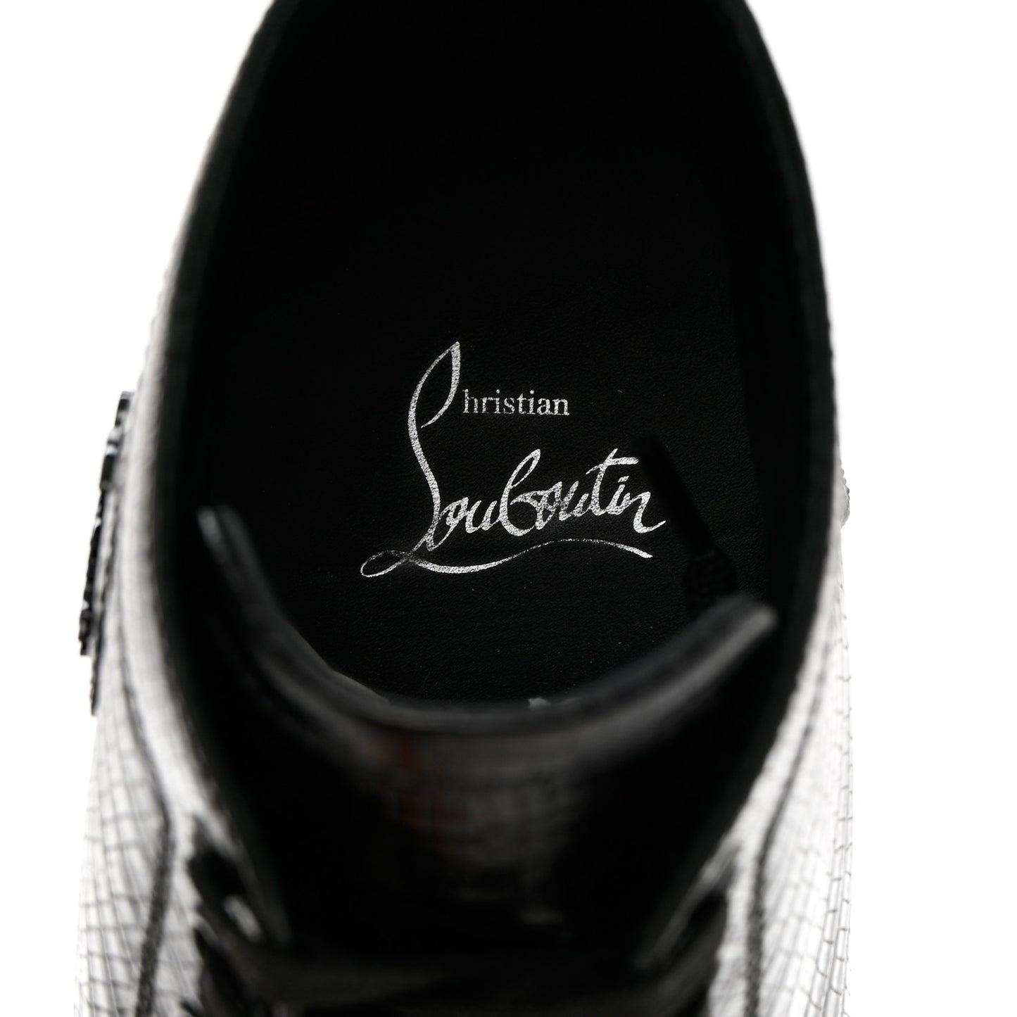 Christian Louboutin/ Accessories/ Shoes /Christian Louboutin Calfskin Lizard Embossed Womens Lou Spikes Flat Sneakers 40.5 Black
