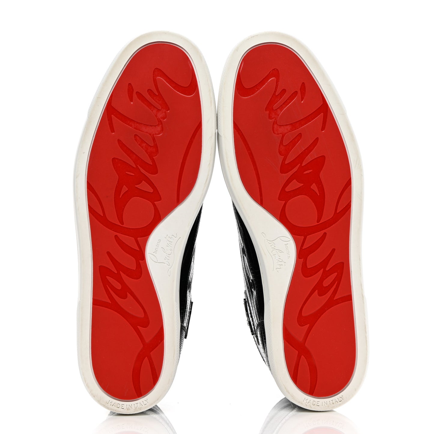 This is an authentic pair of CHRISTIAN LOUBOUTIN Calfskin Lizard Embossed Womens Lou Spikes Flat Sneakers size 40.5 in Black. These classic black leather high top style sneakers feature a striking design of studded cap toes and white rubber soles.Follow this item for alerts. Christian Louboutin is a registered trademark of Christian Louboutin. FASHIONPHILE is not affiliated with Christian Louboutin.