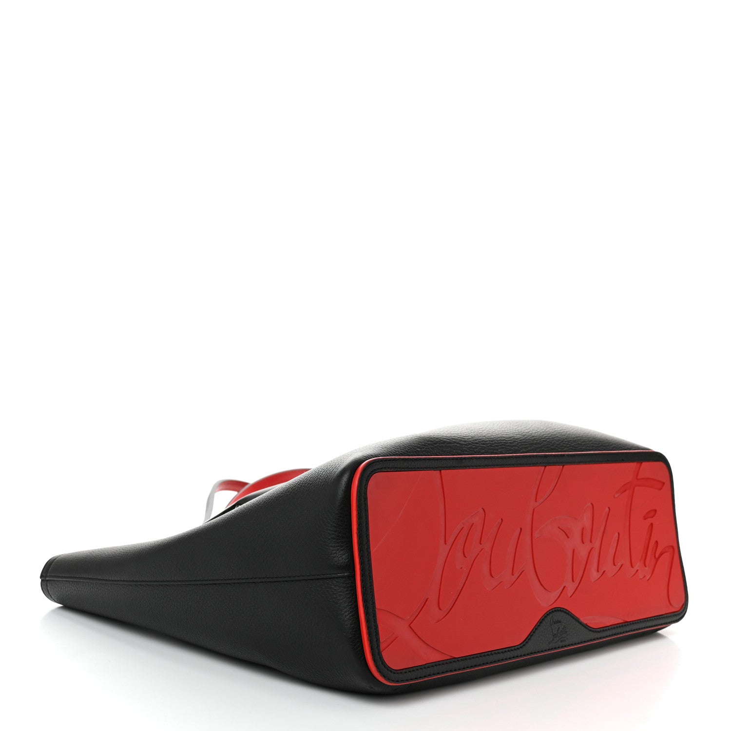 This is an authentic CHRISTIAN LOUBOUTIN Calfskin Spiked Large Cabarock Shopper Tote in Black. This chic tote is crafted of black calfskin leather. It features leather strap handles with silver stud accents and an embossed logo script across the base. The top is open to a red leather interior with a flat pocket.Follow this item for alerts. Christian Louboutin is a registered trademark of Christian Louboutin. FASHIONPHILE is not affiliated with Christian Louboutin.