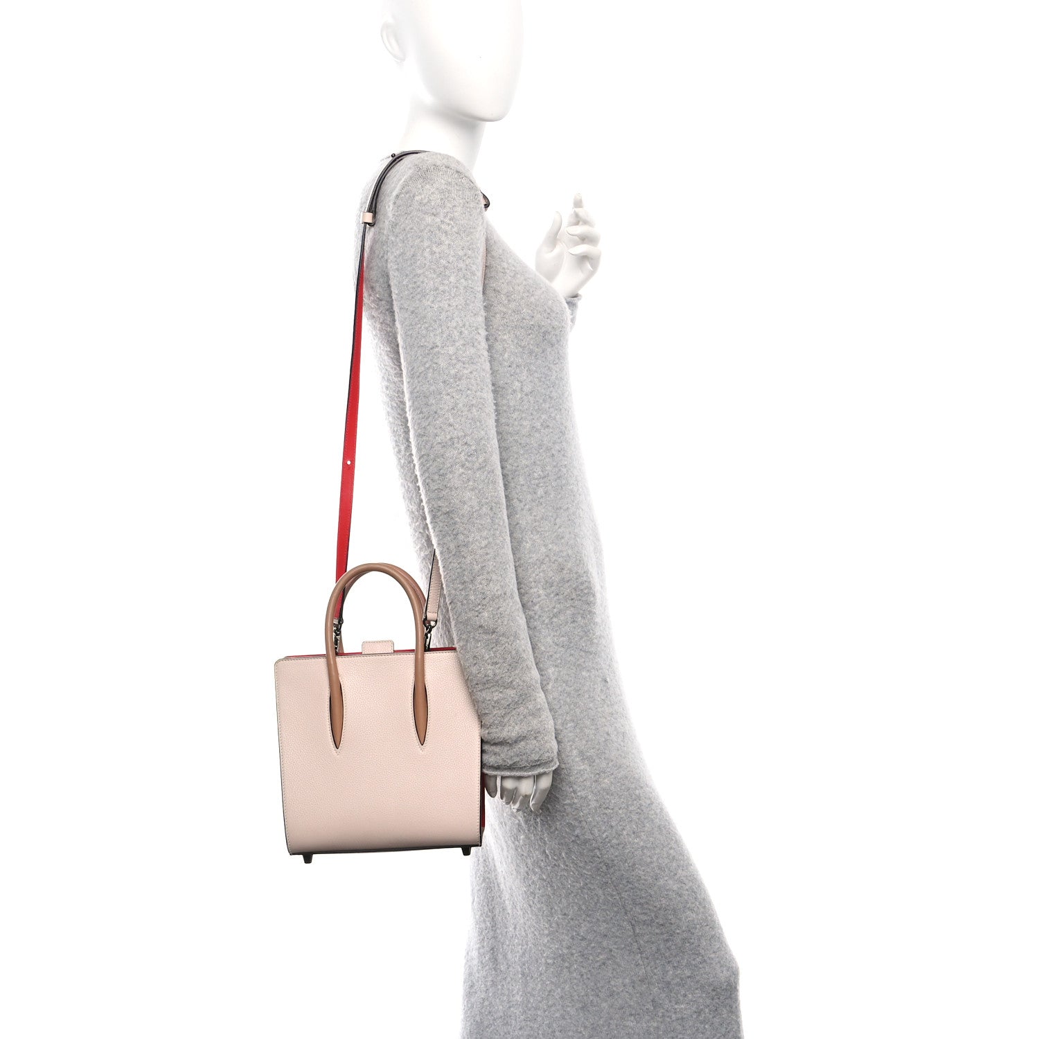 This is a CHRISTIAN LOUBOUTIN Calfskin Studded Small Paloma in Ballerina. This chic handbag is crafted of light pink calfskin leather embellished with various spike studs. The bag features rolled leather top handles and an optional adjustable shoulder strap with silver hardware. The top is open to a red microfiber interior with a zipper pocket.Follow this item for alerts. Christian Louboutin is a registered trademark of Christian Louboutin. FASHIONPHILE is not affiliated with Christian Louboutin.