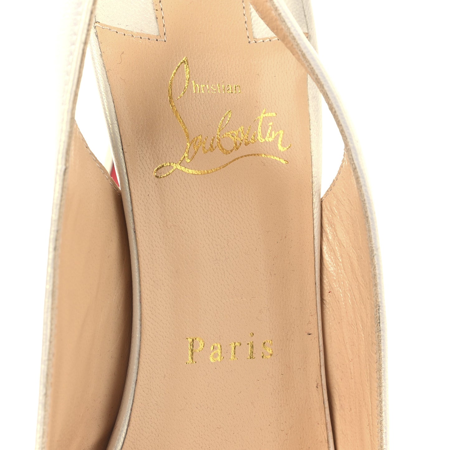 This is an authentic pair of CHRISTIAN LOUBOUTIN Nappa PVC V Sling 85 Pumps size 40.5 in White. These chic pumps are crafted of white leather and PVC cut-out. It features a pointed toe and a 4.25-inch heel.Follow this item for alerts. Christian Louboutin is a registered trademark of Christian Louboutin. FASHIONPHILE is not affiliated with Christian Louboutin.