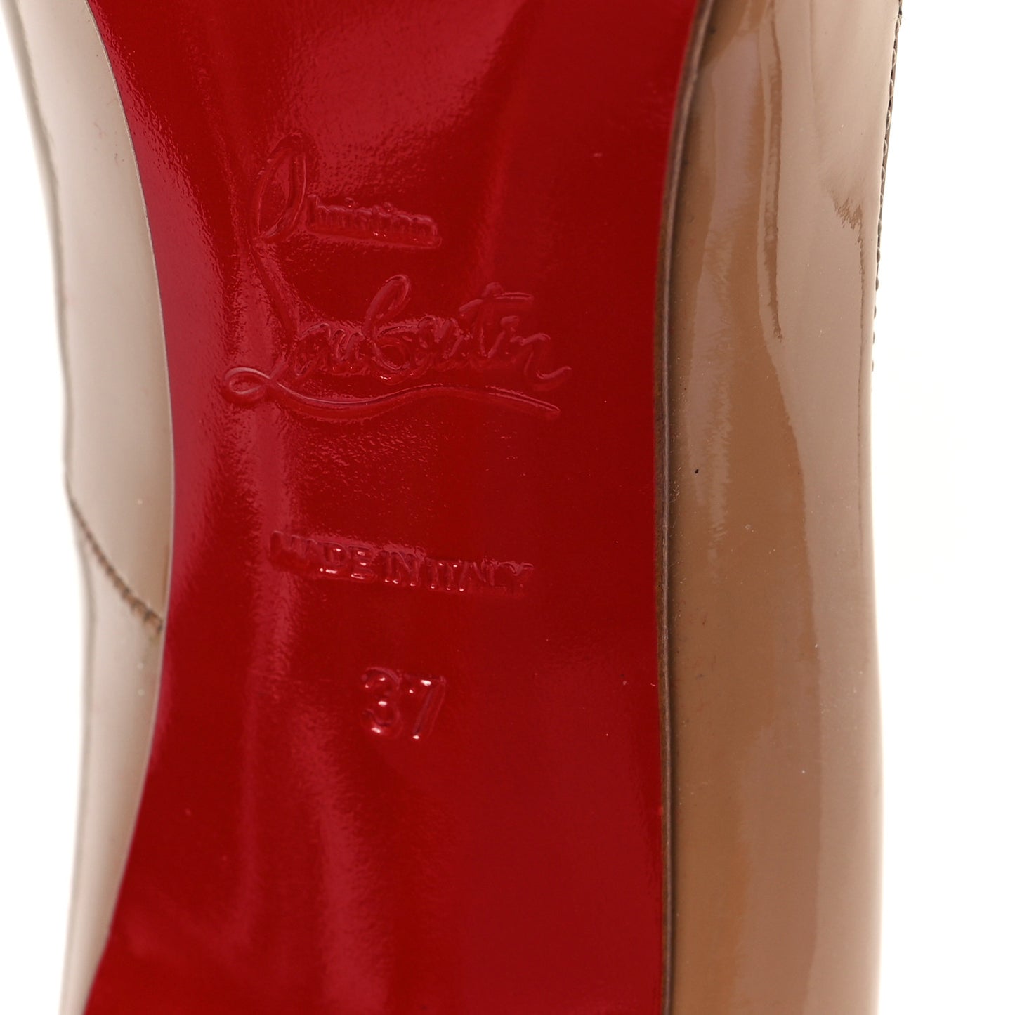 This is an authentic pair of CHRISTIAN LOUBOUTIN Patent Pigalle 100 Pumps size 37 in Nude. These bold platform toe pumps are crafted glossy patent leather in beige with a wrapped 4-inch stiletto heel and a short pointed toe.Follow this item for alerts. Christian Louboutin is a registered trademark of Christian Louboutin. FASHIONPHILE is not affiliated with Christian Louboutin.