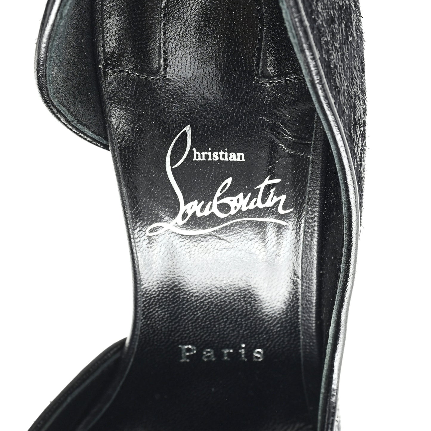 These are authentic CHRISTIAN LOUBOUTIN Velvet Papillon Iriza 100 Pumps size 37.5 in Black. These chic pumps are crafted of black velvet with a shimmering detail. They have a pointed toe with a 4.25-inch wrapped stiletto.Follow this item for alerts. Christian Louboutin is a registered trademark of Christian Louboutin. FASHIONPHILE is not affiliated with Christian Louboutin.