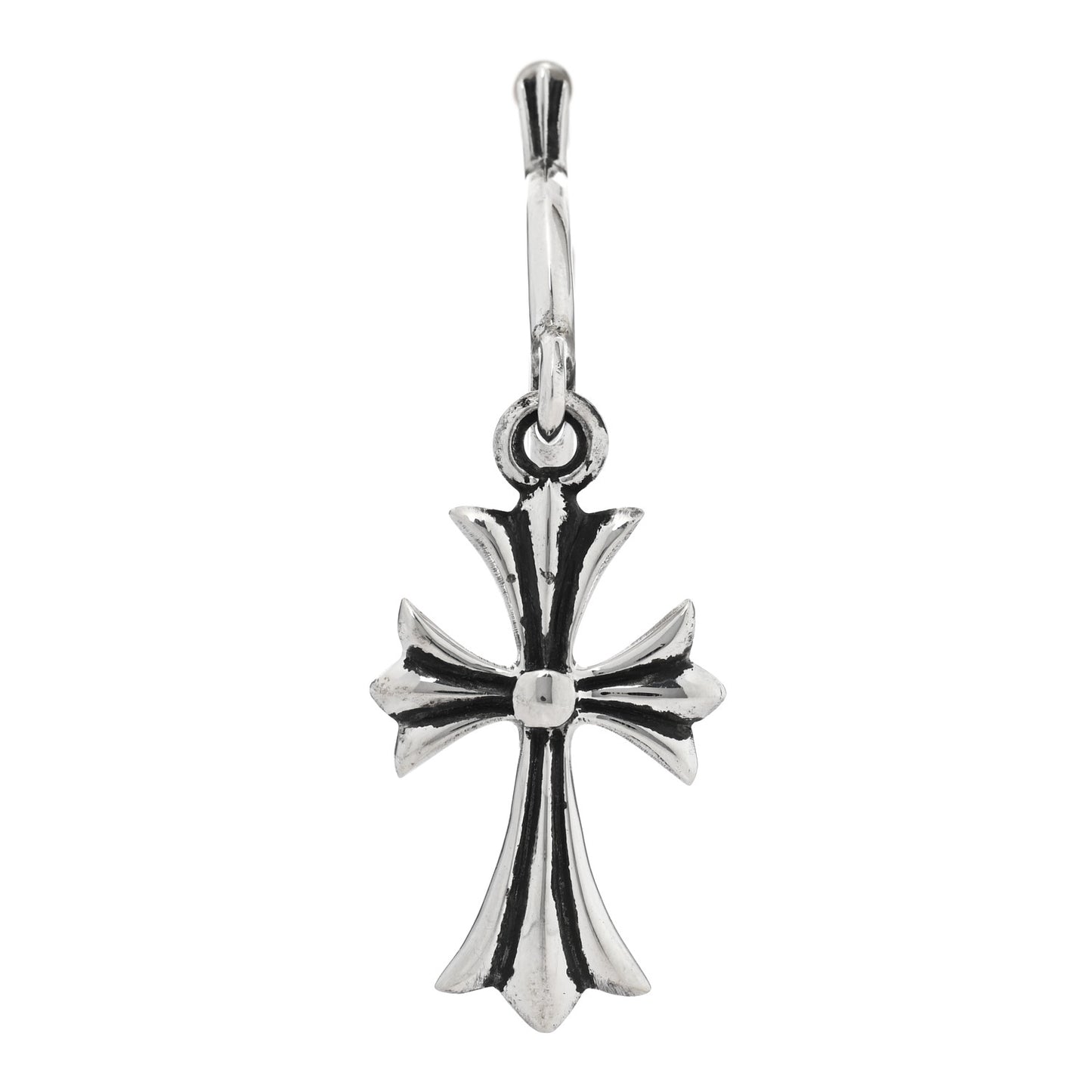 Chrome Hearts/ Accessories/ Earrings /Chrome Hearts Sterling Silver Tiny CH Cross Hoop Drop Single Earring