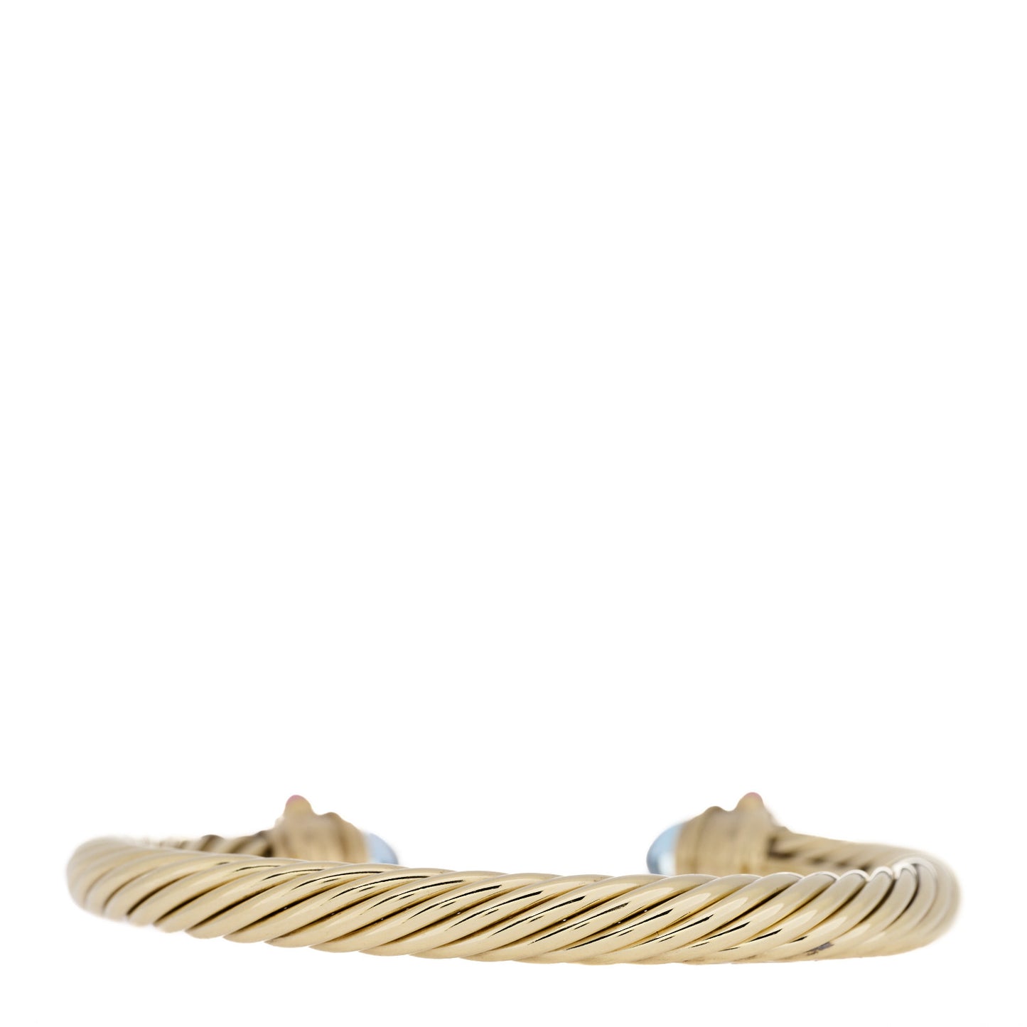 This is an authentic DAVID YURMAN 14K Yellow Gold Blue Topaz Pink Tourmaline 7mm Cable Renaissance Bracelet. The bracelet is crafted of 14 karat yellow gold and features a cable style band set with blue topaz and pink tourmaline cabochons on each end.Follow this item for alerts. David Yurman is a registered trademark of David Yurman. FASHIONPHILE is not affiliated with David Yurman.