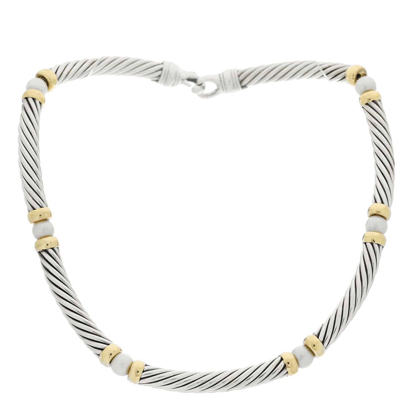 David Yurman/ Jewelry/ Necklaces /David Yurman Sterling Silver 14K Yellow Gold Cultured Pearl Hampton Cable Choker Necklace