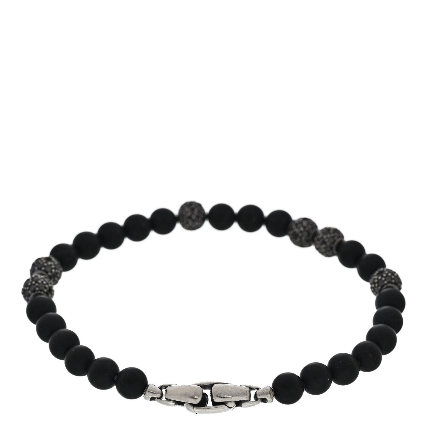 This is an authentic DAVID YURMAN Sterling Silver Black Diamond Black Onyx 6mm Spiritual Beads Bracelet. The bracelet is crafted of sterling silver and features 6mm matte black onyx beads and six pave-set black diamond beads weighing approximately 3.14 total carat weight.Follow this item for alerts. David Yurman is a registered trademark of David Yurman. FASHIONPHILE is not affiliated with David Yurman.