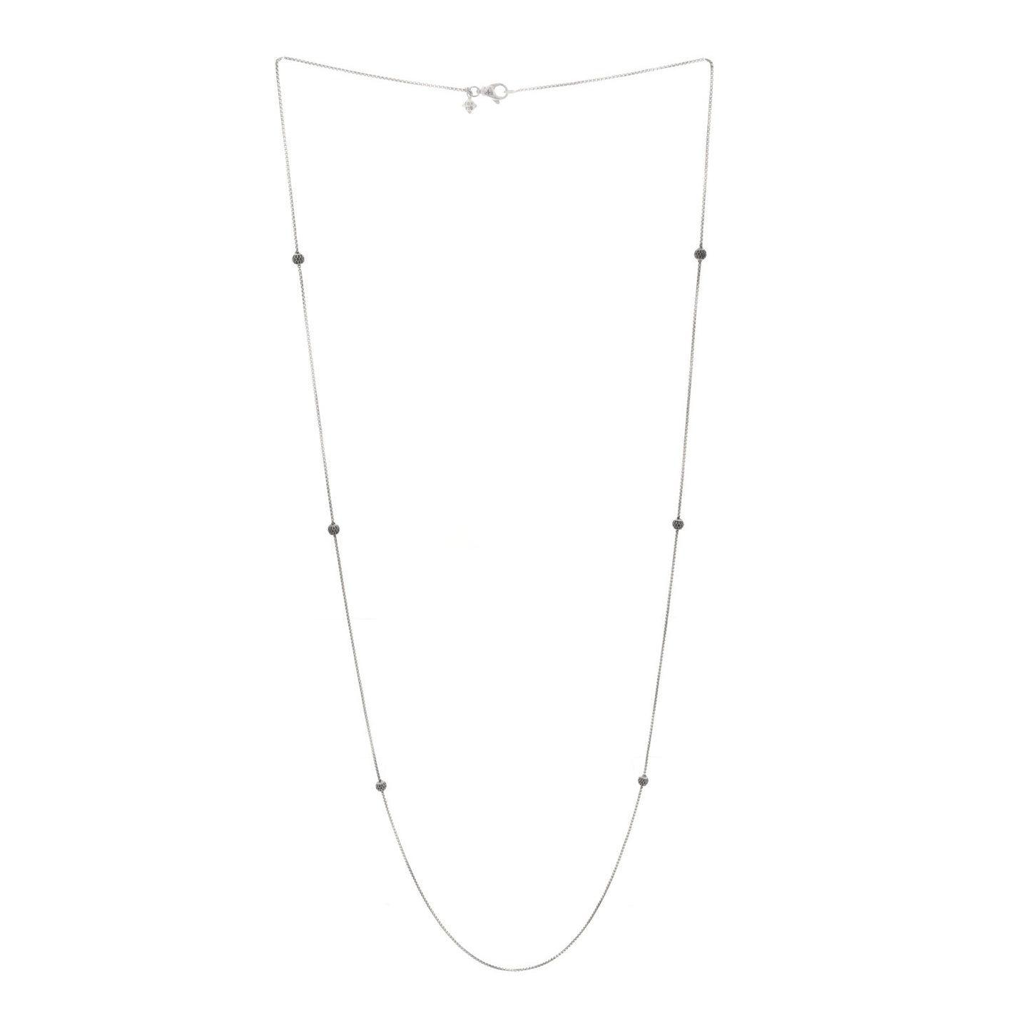Sterling Silver Black Diamond Pave Ball Station Necklace