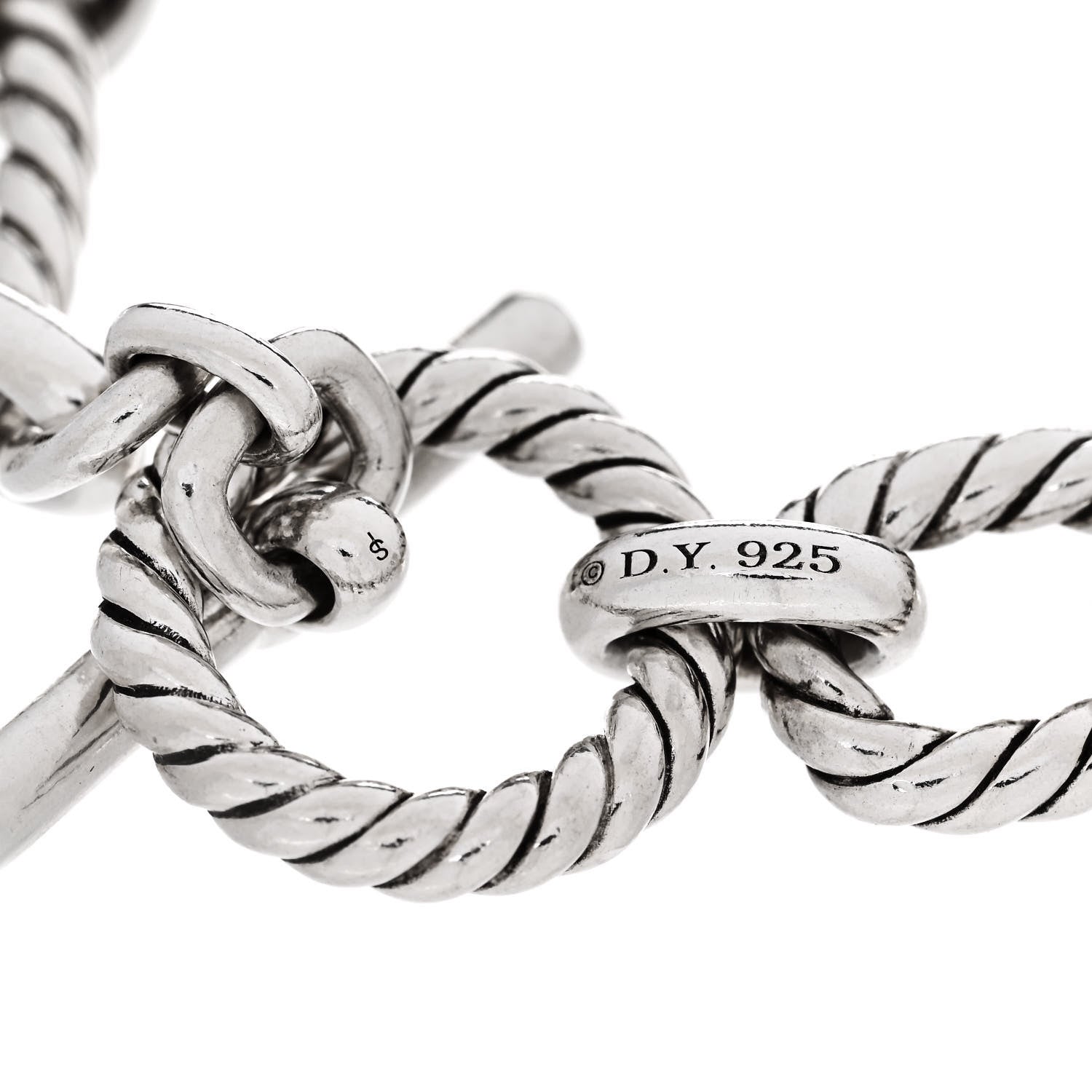 This is an authentic DAVID YURMAN Sterling Silver Blue Sapphire 12.5mm Cushion Link Bracelet. The bracelet is crafted of sterling silver and features alternating cable and polished links with a toggle clasp. The toggle bar is set with two bezel set round cut blue sapphires on either end.Follow this item for alerts. David Yurman is a registered trademark of David Yurman. FASHIONPHILE is not affiliated with David Yurman.