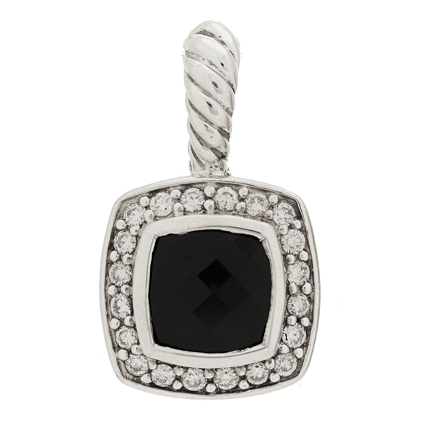 This is an authentic DAVID YURMAN Sterling Silver Diamond Black Onyx 7mm Petite Albion Enhancer Pendant. The pendant is crafted of sterling silver and features a faceted 7mm black onyx framed by pave set diamonds, approximately .17 total carat weight.Follow this item for alerts. David Yurman is a registered trademark of David Yurman. FASHIONPHILE is not affiliated with David Yurman.