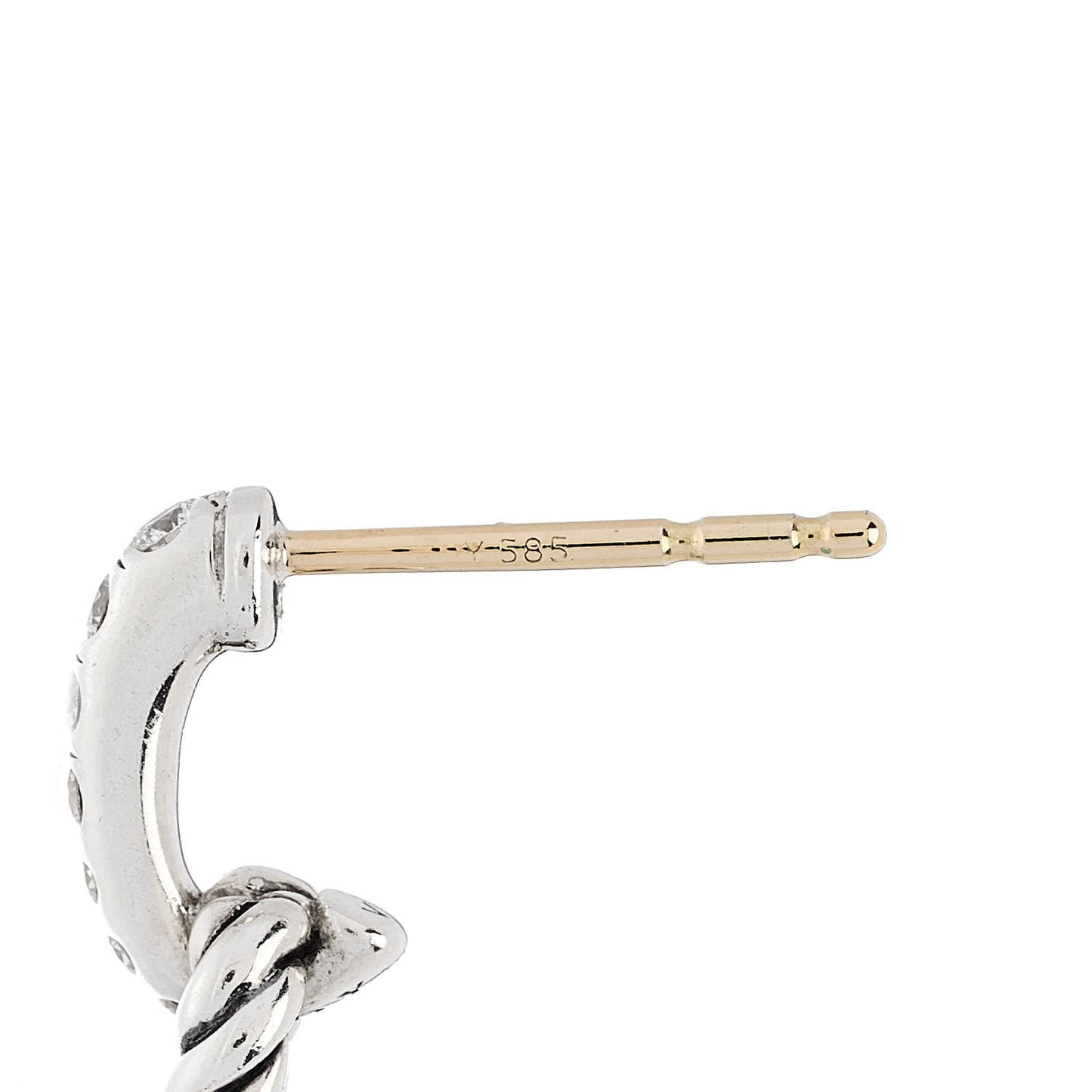 This is an authentic pair of DAVID YURMAN Sterling Silver Diamond Turquoise Elements Drop Earrings. The earrings are crafted of sterling silver and feature a polished turquoise slice framed by a cable motif bezel and pave-set diamond accents weighing approximately .27 total carat weight. The earrings also feature 14 karat yellow gold posts for sensitive ears.Follow this item for alerts. David Yurman is a registered trademark of David Yurman. FASHIONPHILE is not affiliated with David Yurman.