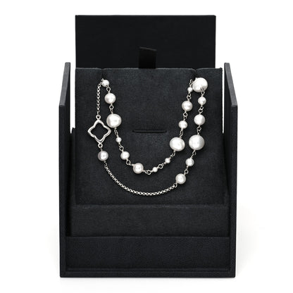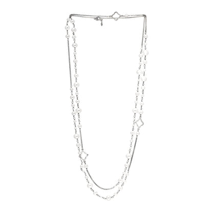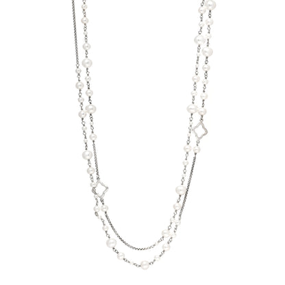 Sterling Silver Pearl Quatrefoil Long Chain Necklace