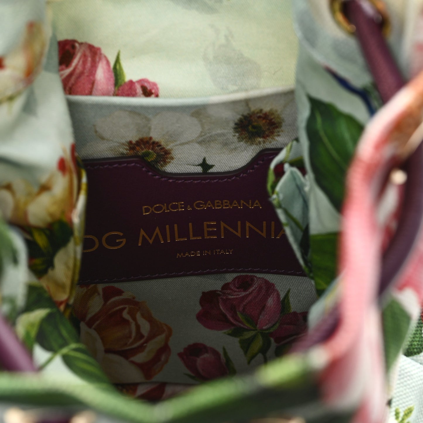 Dolce & Gabbana/ Bags/ Handbags /Dolce & Gabbana Wicker Canvas Floral Print Millennials Bucket Bag Multicolor