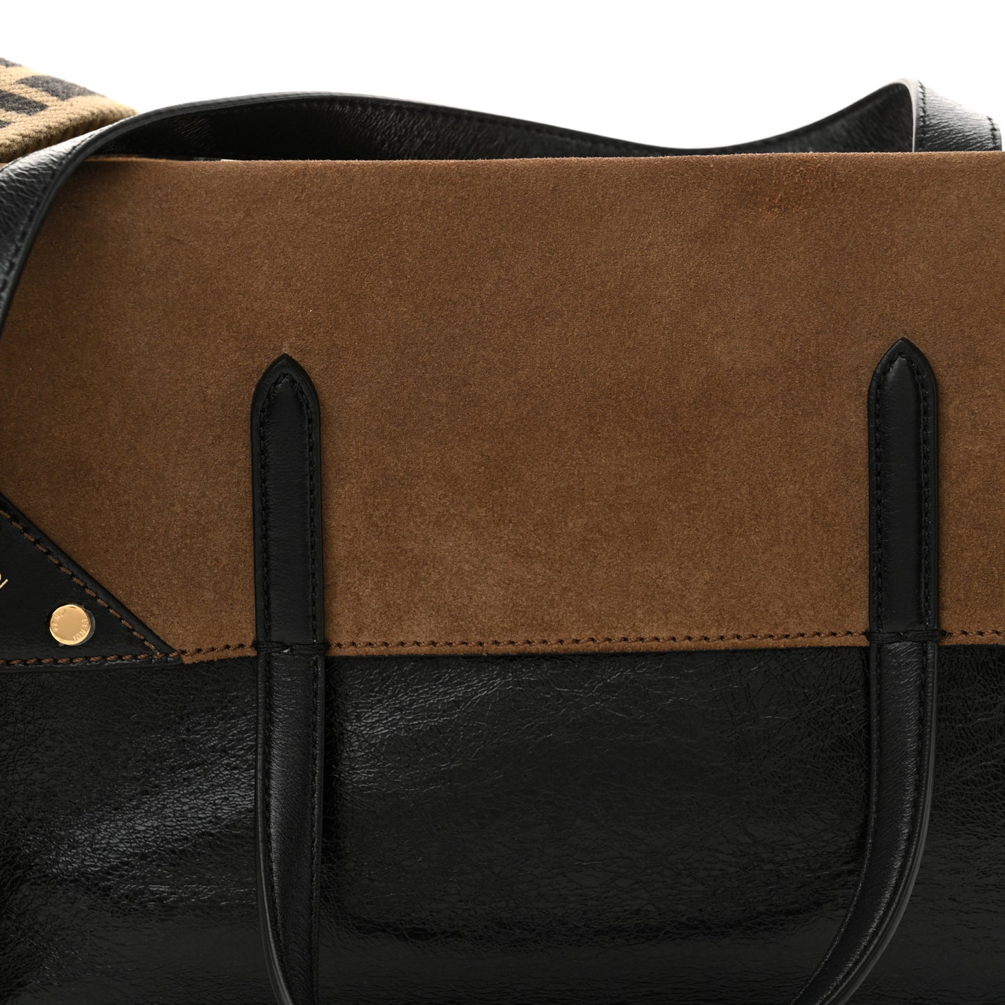 Fendi/ Bags/ Shoulder Bags /Fendi Agnello Old Shine Vitello Go Rain Large Flip Tote Black Marrone