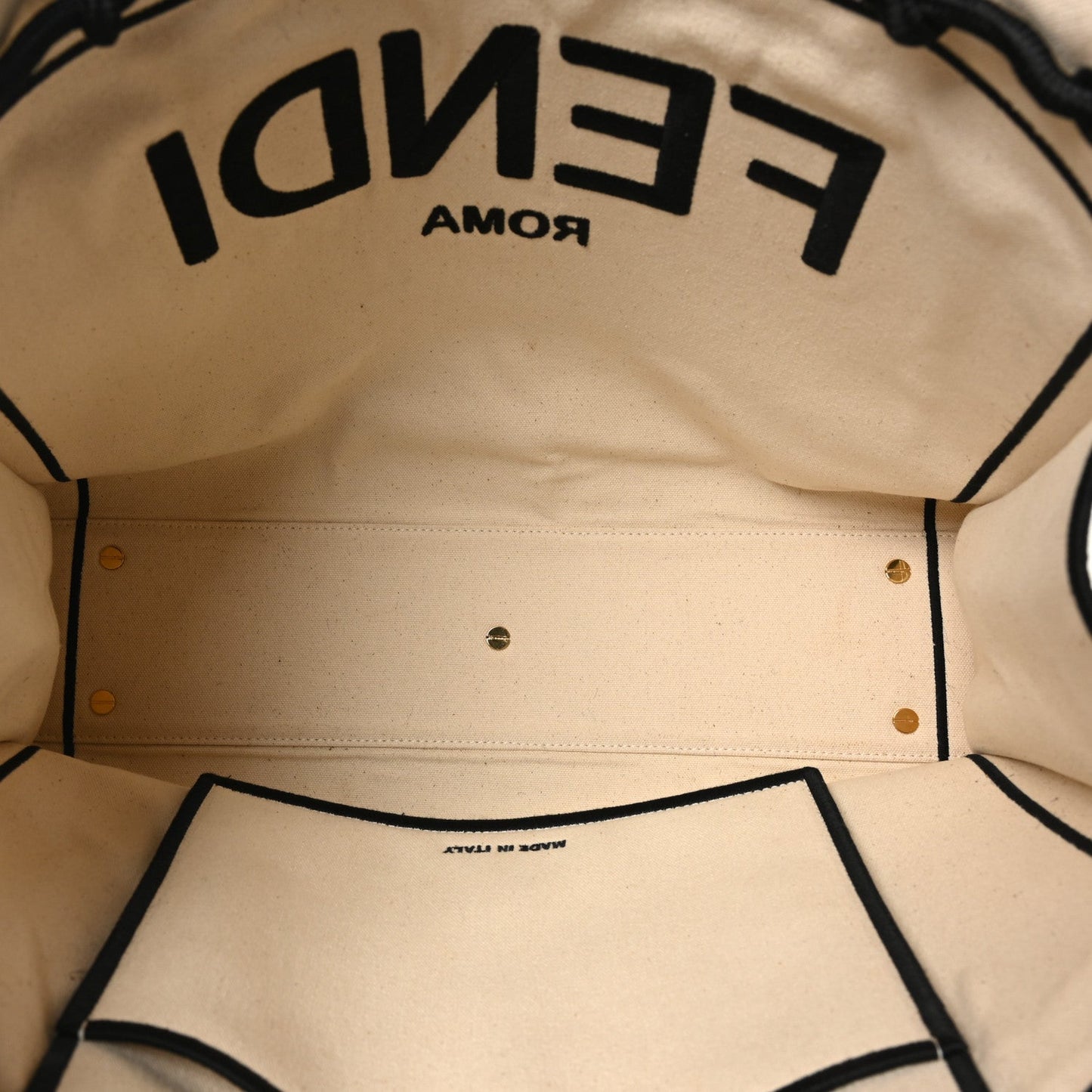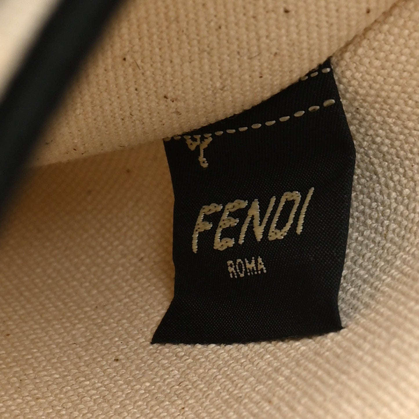 This is an authentic FENDI Canvas Logo Shopping Tote in White. This stylish tote is crafted of beige canvas and features black trim, shoulder straps and a black logo. The top is open to a spacious interior with a hanging pocket.Follow this item for alerts. Fendi is a registered trademark of Fendi. FASHIONPHILE is not affiliated with Fendi.