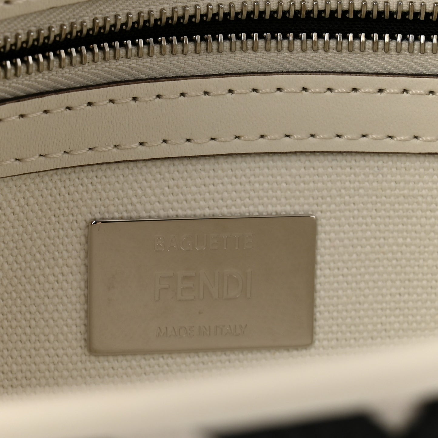 Fendi/ Bags/ Shoulder Bags /Fendi Canvas Vitello King FF Embroidered Baguette White Black