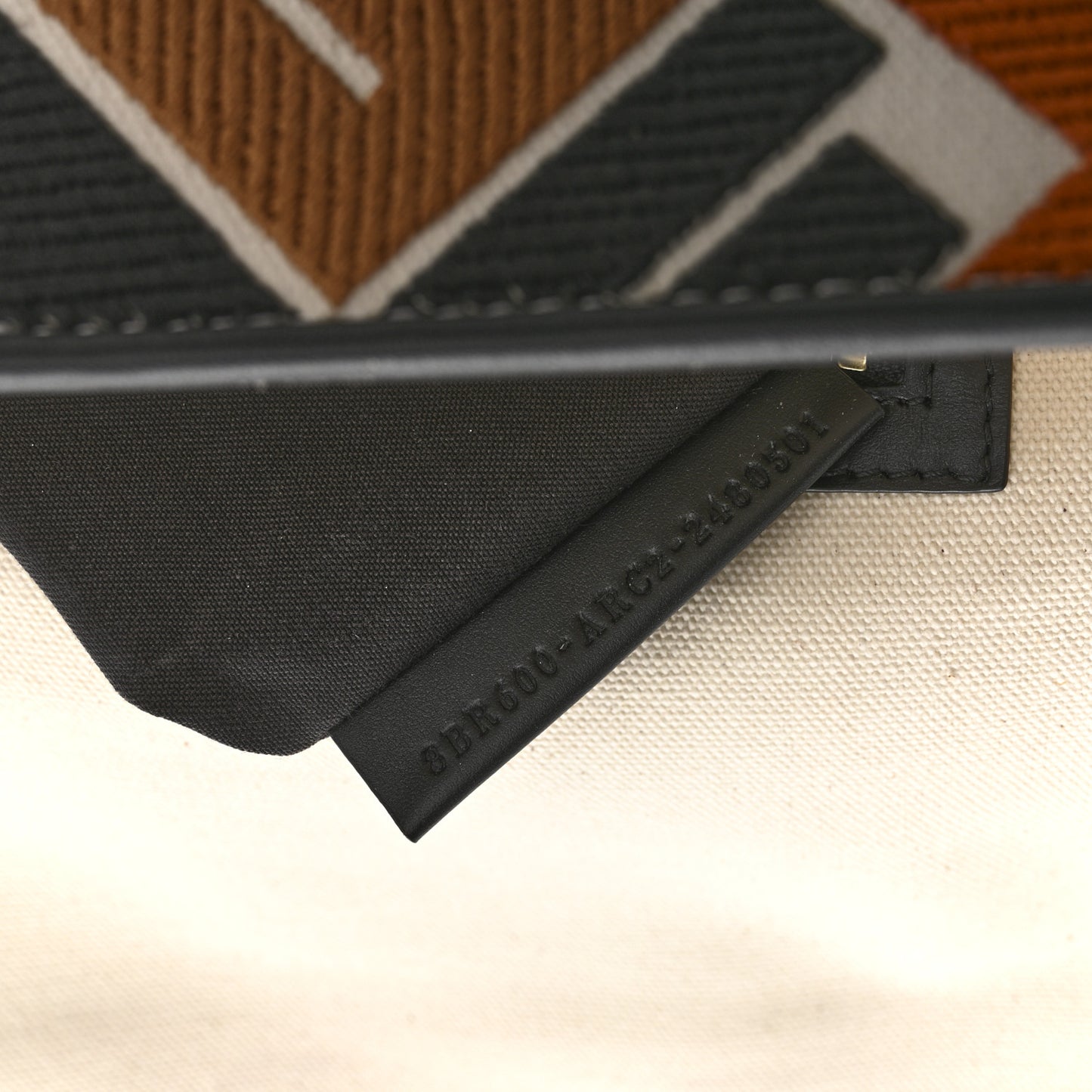 Canvas Vitello Seta FF Embroidered Baguette Brandy Black