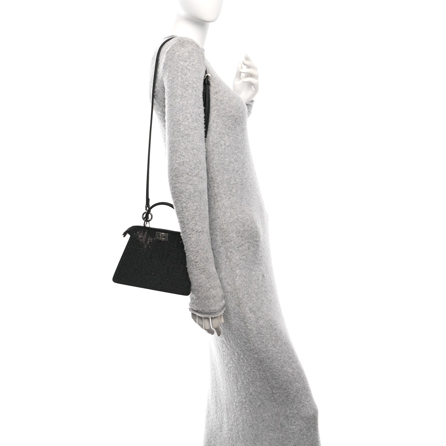 Fendi/ Bags/ Shoulder Bags /Fendi Crystal Shiny Nappa FF Petite Peekaboo I SEE U Satchel Black