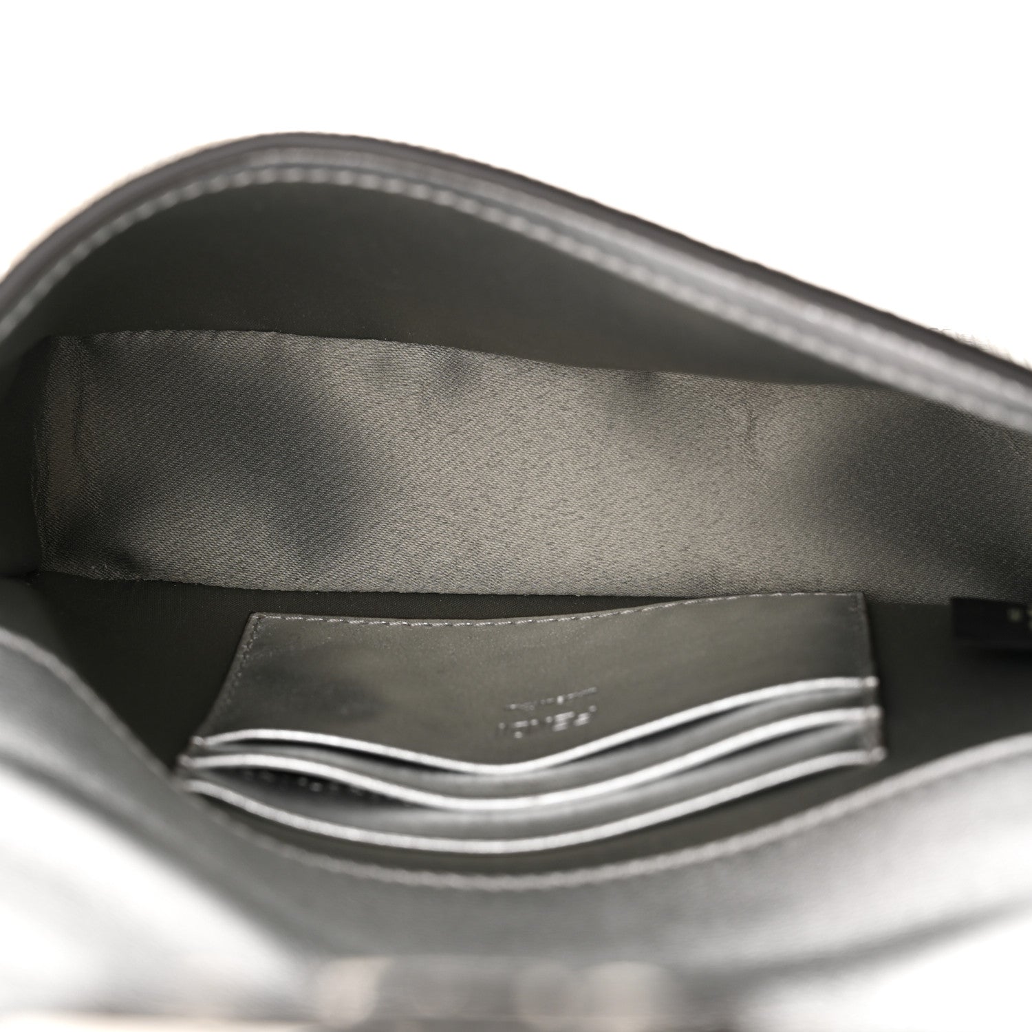 This is an authentic FENDI Crystal Vitello Laminato FF Mini Baguette in Crystal and Argento. This stylish mini shoulder bag is finely crafted of crystal-covered gray suede leather. The bag features a silver FF logo on the crossover flap, leather strap handle, and an optional silver chain shoulder strap with a leather shoulder pad. The crossover flap opens to a gray satin lined interior with card slots.Follow this item for alerts. Fendi is a registered trademark of Fendi. FASHIONPHILE is not affiliated with Fendi.
