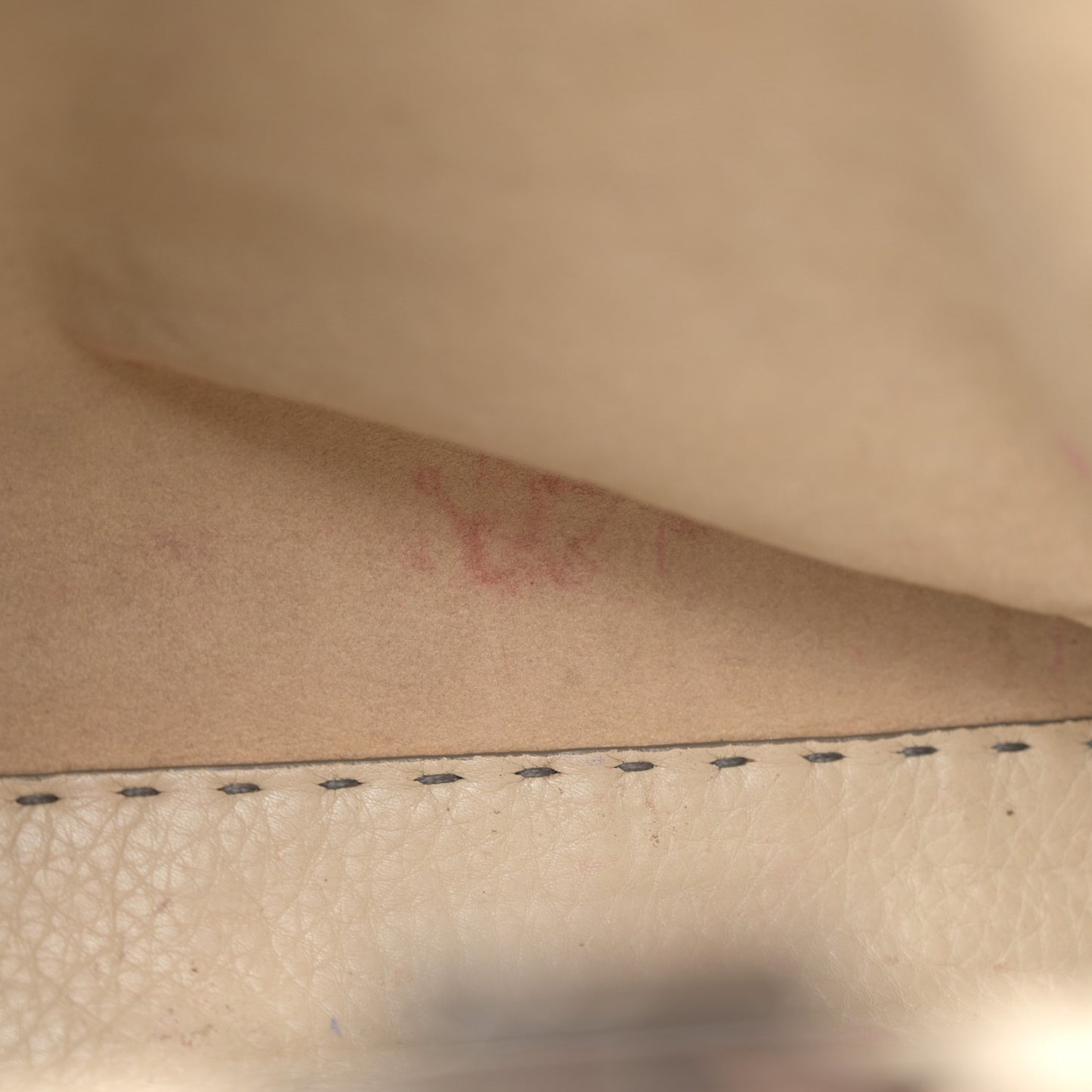 This is an authentic FENDI Cuoio Romano Selleria Bi-Color Medium Peekaboo Iconic Satchel in Asfalto Latte. This stylish handmade tote is crafted of richly-grained grey calfskin leather with hand-stitched border trim. The bag features a polished silver turn lock on each side and is carried by a leather top handle or an optional leather cross-body shoulder strap. The bag opens to a partitioned beige leather interior with a pocket.Follow this item for alerts. Fendi is a registered trademark of Fendi. FASHIONPHILE is not affiliated with Fendi.