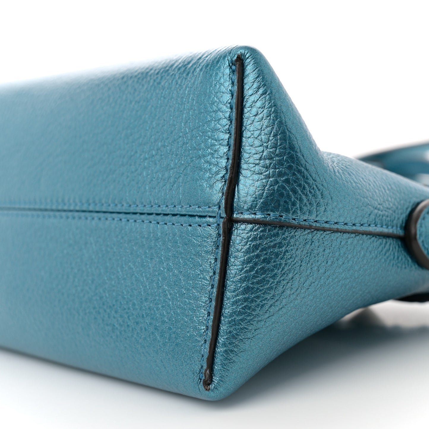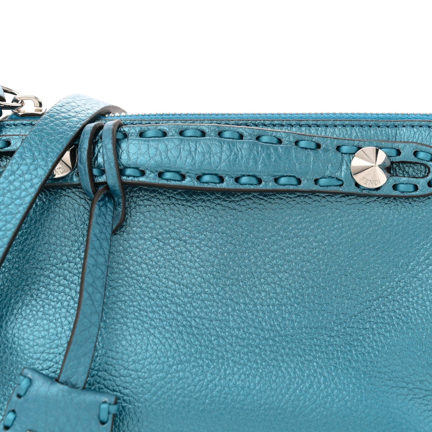 This is an authentic FENDI Metallic Cuoio Romano Selleria Sintetica Tape Stitch Mini By The Way Boston Bag in Laguna. This chic mini satchel is finely crafted of metallic grained calfskin leather in blue. It features top stitch detailing, top handles, an optional removable strap, and silver hardware. The top zipper opens to a matching interior.Follow this item for alerts. Fendi is a registered trademark of Fendi. FASHIONPHILE is not affiliated with Fendi.