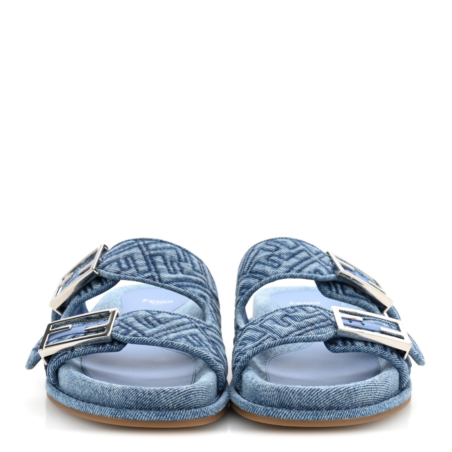 Denim FF Quilted Fendi Feel Buckled Slide Sandals 37.5 Blue