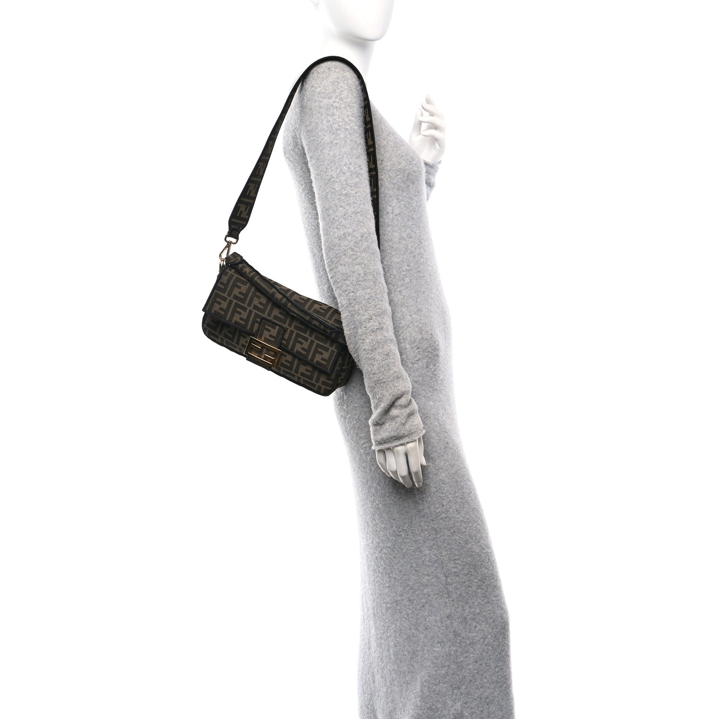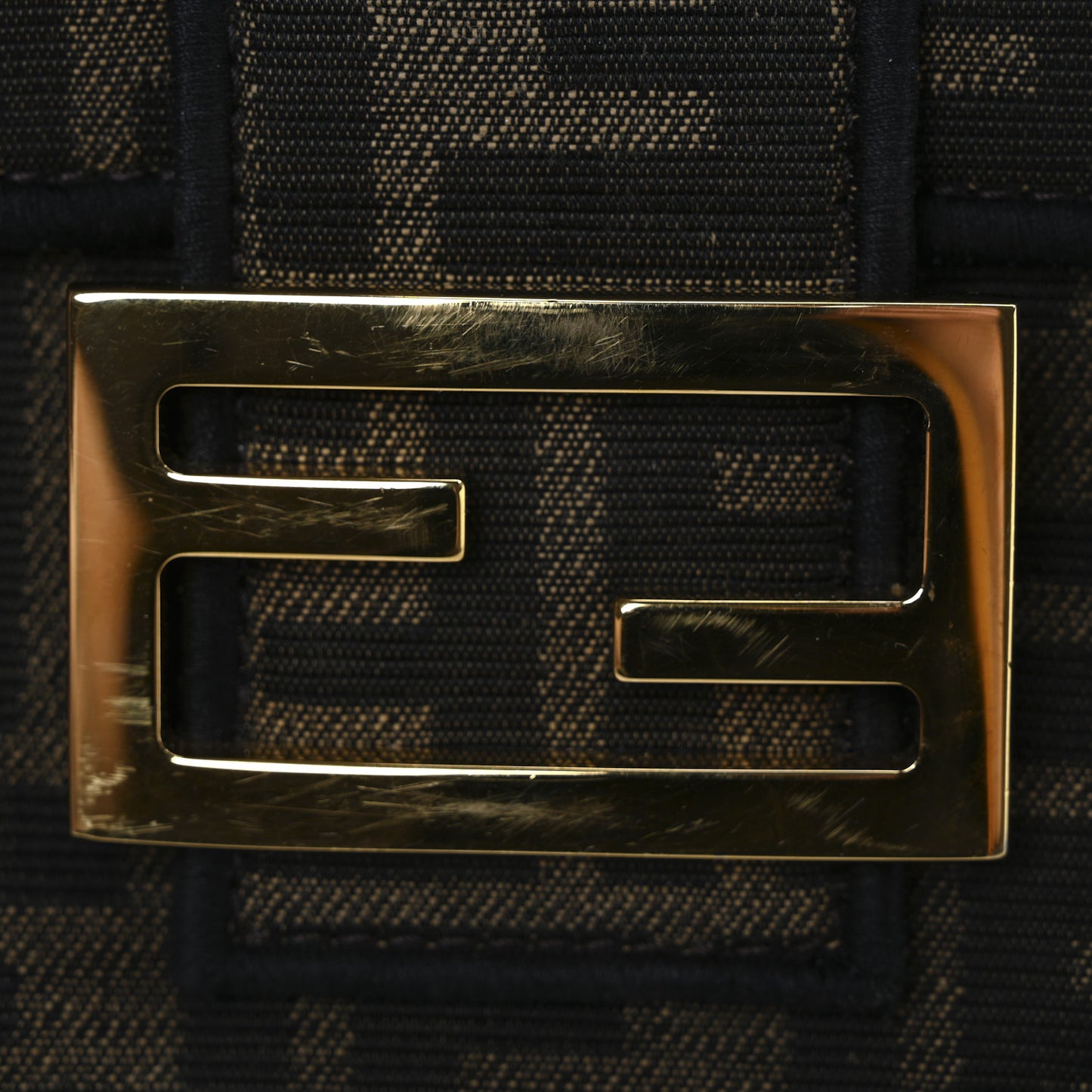 Fendi/ Bags/ Shoulder Bags /Fendi Fabric Jacquard FF 1974 Medium Baguette Tobacco Moro Black
