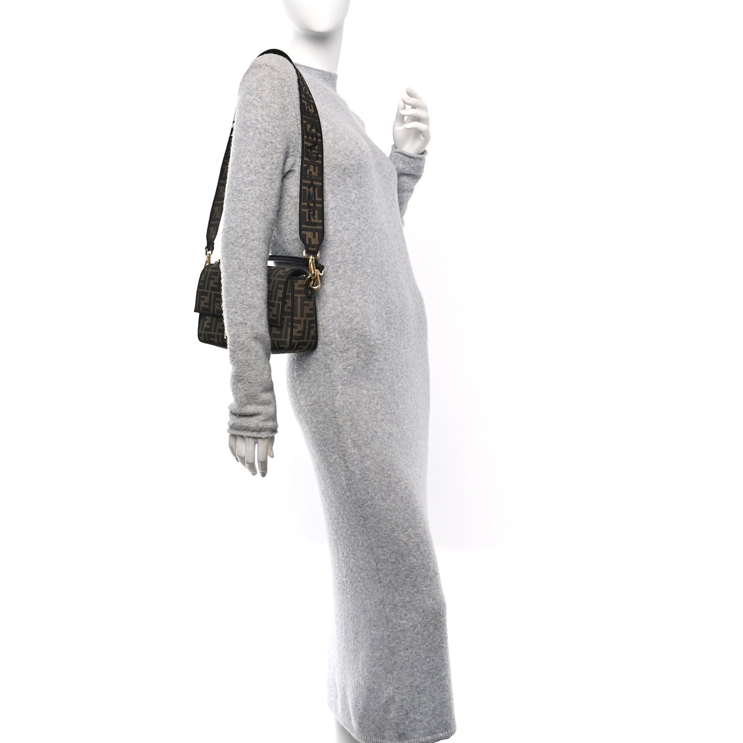 Fendi/ Bags/ Shoulder Bags /Fendi Fabric Jacquard FF 1974 Medium Baguette Tobacco Moro Black