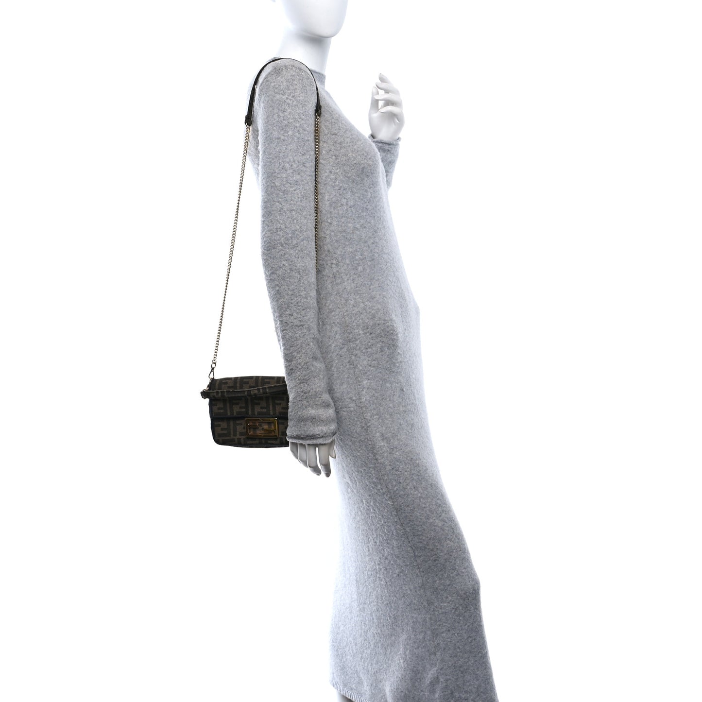 Fendi/ Bags/ Shoulder Bags /Fendi Fabric Jacquard FF 1974 Mini Baguette Tobacco Moro Black