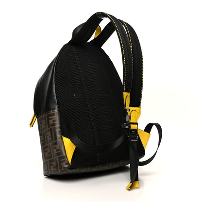 Fendi/ Bags/ Men's Bags /Fendi Glazed Fabric Calfskin FF 1974 Mania Pouch Pocket Backpack Mogano Panna Black Yellow