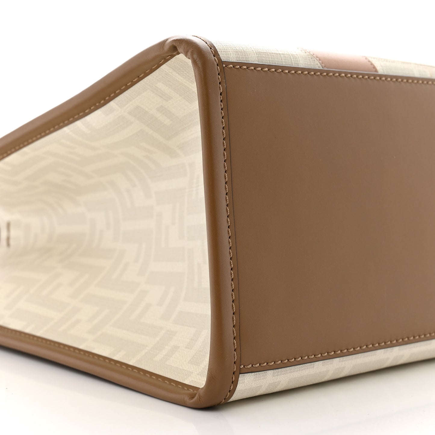 Fendi/ Bags/ Shoulder Bags /Fendi Glazed Fabric Plexiglass FF Logo Bikini Girls Medium Fendi Sunshine Shopper Tote Bianco Perla Multicolor Miele Scuro