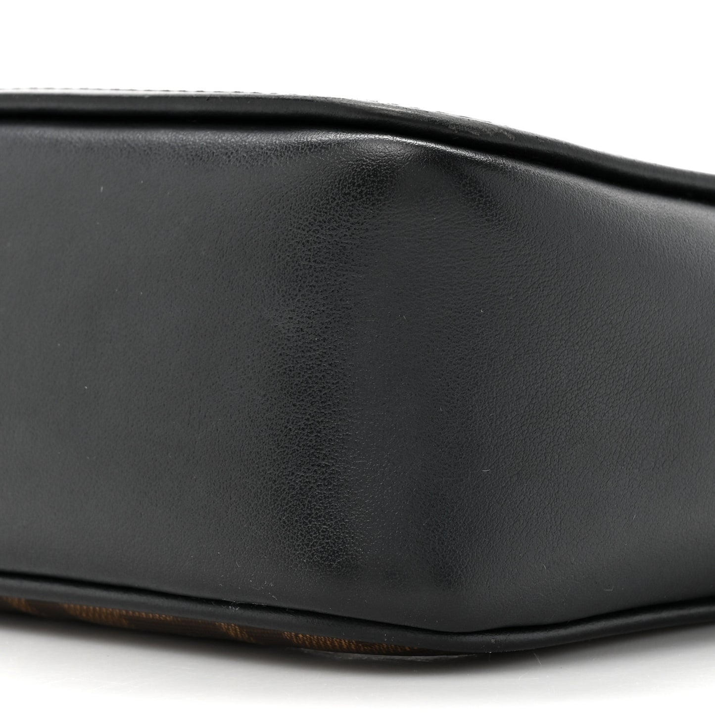 Fendi/ Bags/ Handbags /Fendi Glazed Fabric Vitello Century FF 1974 Stamp Patch Mini Camera Case Mogano Panna Black