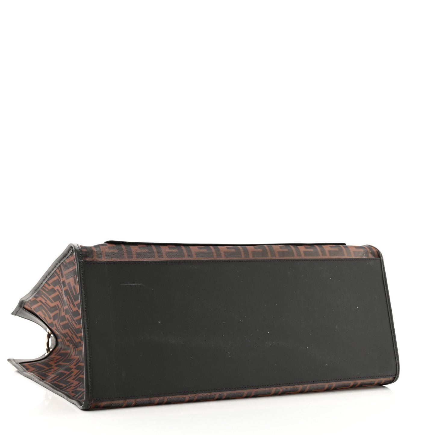 This is an authentic FENDI Mesh Vitello Century Cuoio FF 1974 Medium Runaway Shopper Tote in Marrone, Black and Ebano. This chic tote is crafted of Zucca printed woven mesh. The bag features dark brown wooden top handles, a front zipper pocket, and silver hardware. The top opens to a spacious interior.Follow this item for alerts. Fendi is a registered trademark of Fendi. FASHIONPHILE is not affiliated with Fendi.