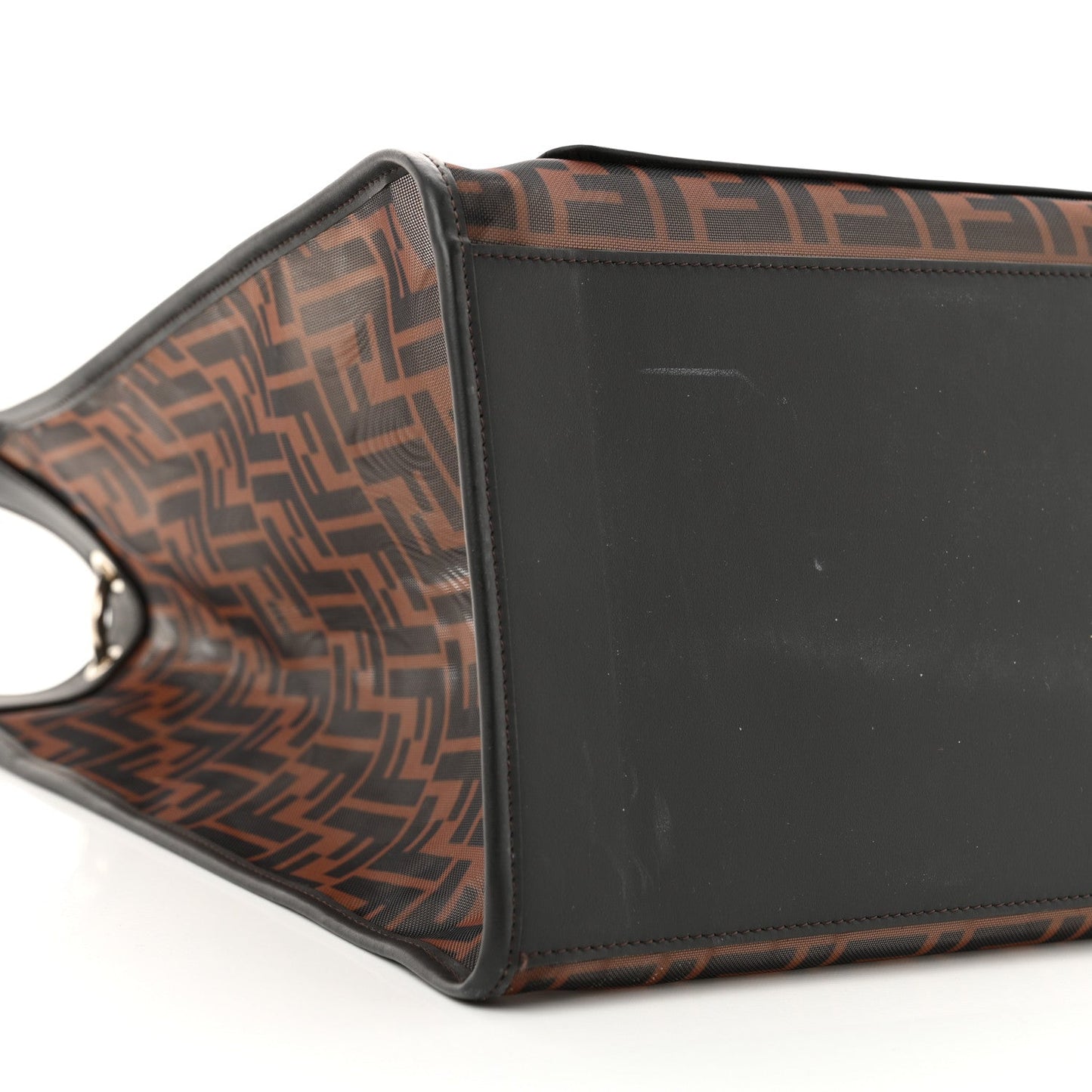 Mesh Vitello Century Cuoio FF 1974 Medium Runaway Shopper Tote Marrone Black Ebano
