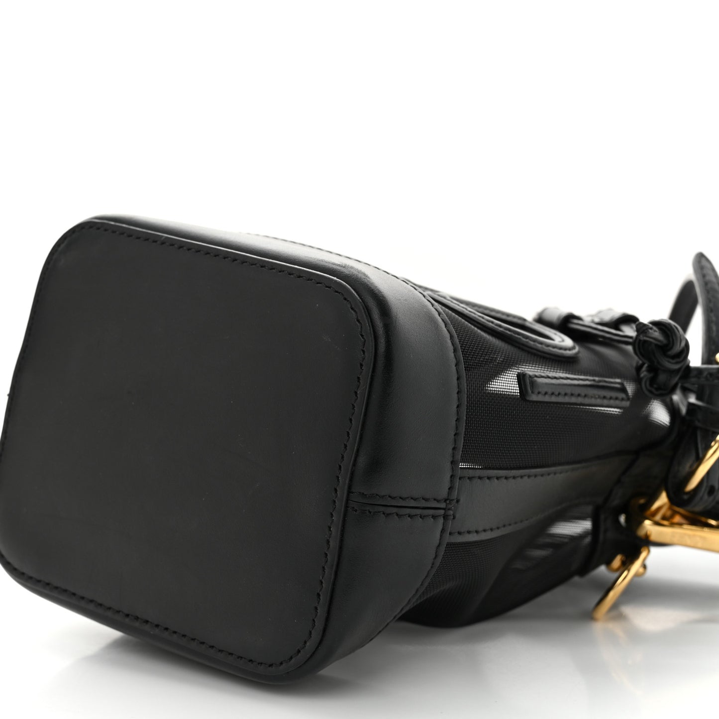 Mesh Vitello King F is Fendi Logo Embroidered Mini Mon Tresor Bucket Bag Black