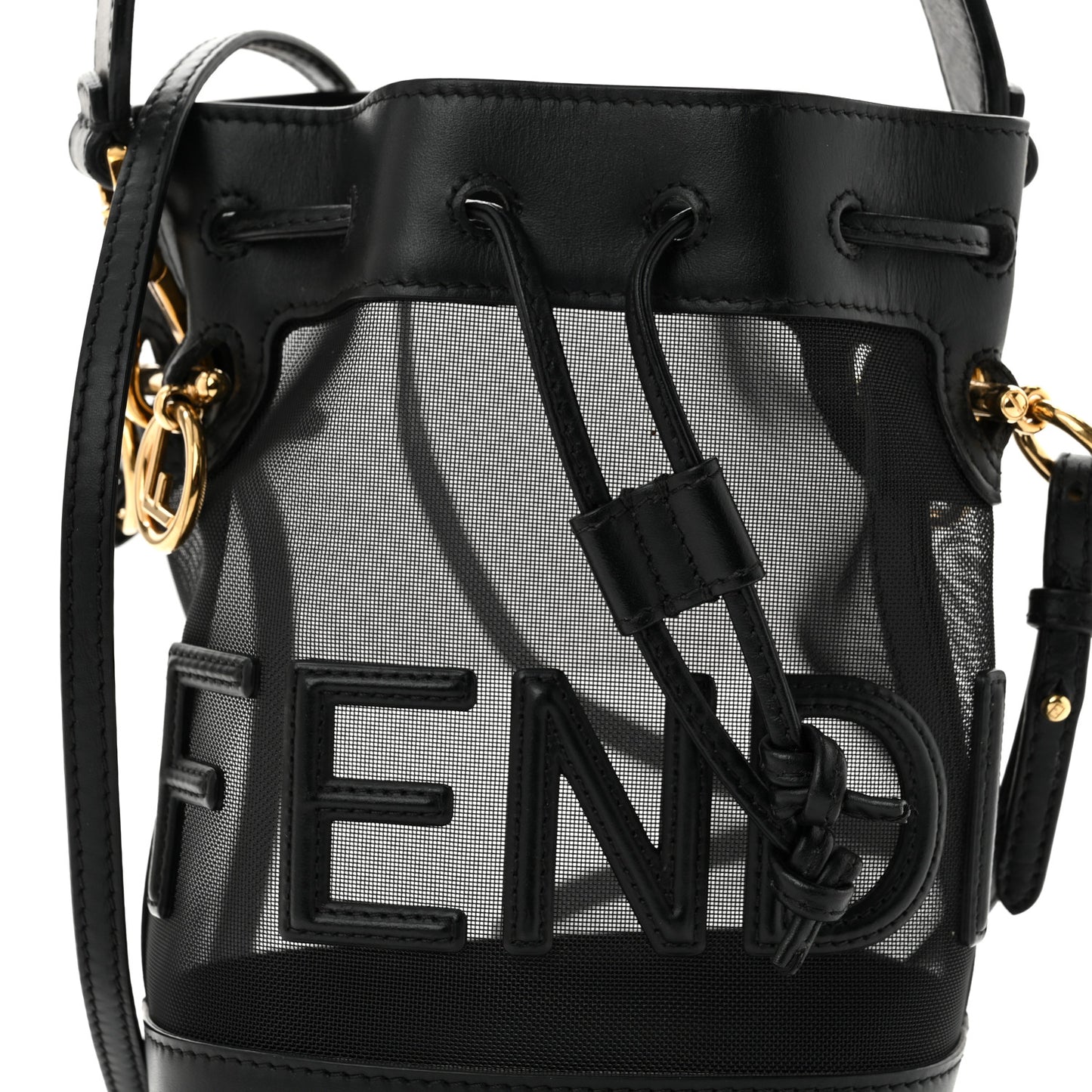 Fendi/ Bags/ Shoulder Bags /Fendi Mesh Vitello King F is Fendi Logo Embroidered Mini Mon Tresor Bucket Bag Black