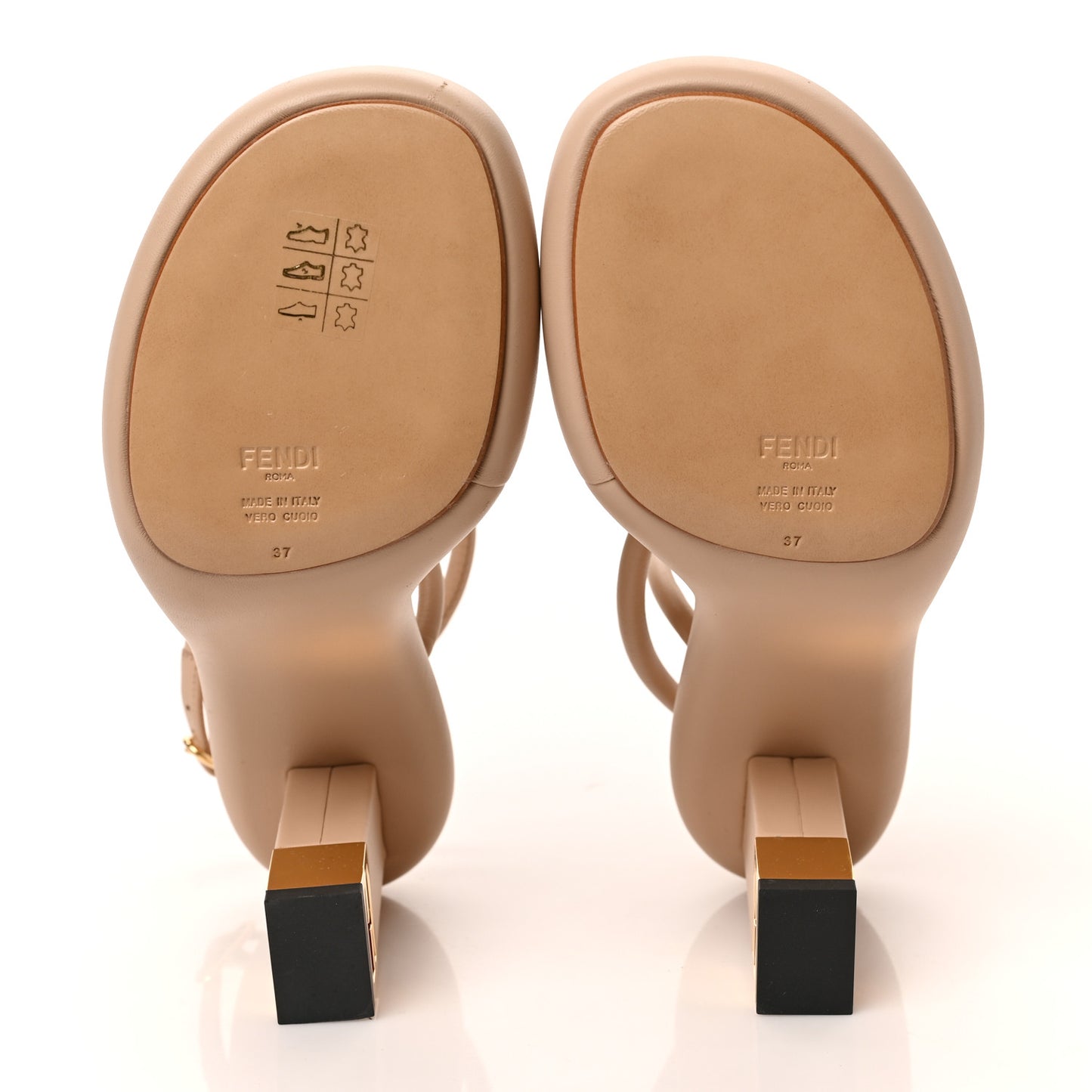 This is an authentic pair of FENDI Nappa Baguette Ankle Strap 30/110mm Platform Sandals size 37 in Buff. These stylish slides are crafted of FF metal block heels and nappa leather in beige, and feature a 2.36-heel.Follow this item for alerts. Fendi is a registered trademark of Fendi. FASHIONPHILE is not affiliated with Fendi.