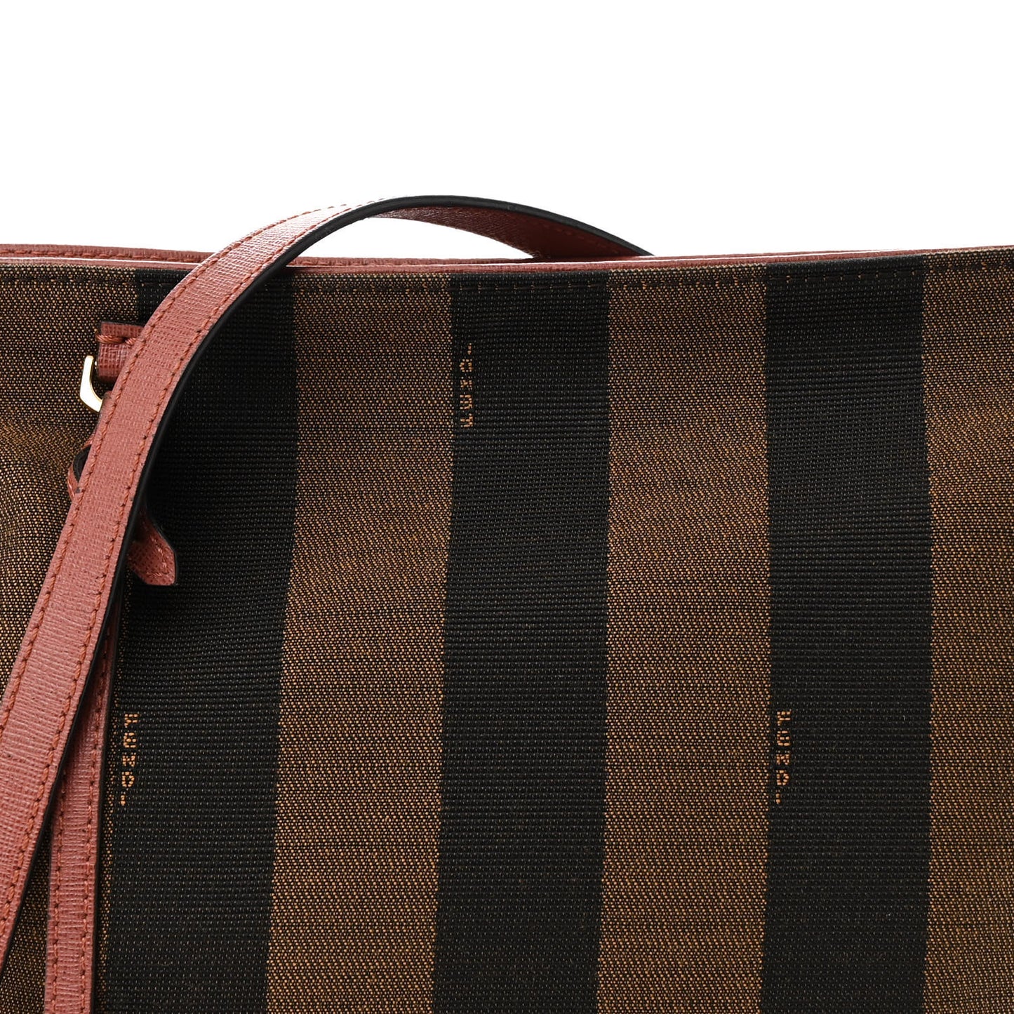 This is an authentic FENDI Pequin Vitello Elite 2Jours Bucket Bag in Tobacco. This stylish hobo is crafted of fine two-toned striped Fendi name logo canvas. The bag features a pink leather base and bottom trim, a long adjustable pink leather shoulder strap and brass hardware. The top is open to a coarse linen fabric interior. This is a stylish shoulder bag with an exceptional look, from Fendi!Follow this item for alerts. Fendi is a registered trademark of Fendi. FASHIONPHILE is not affiliated with Fendi.