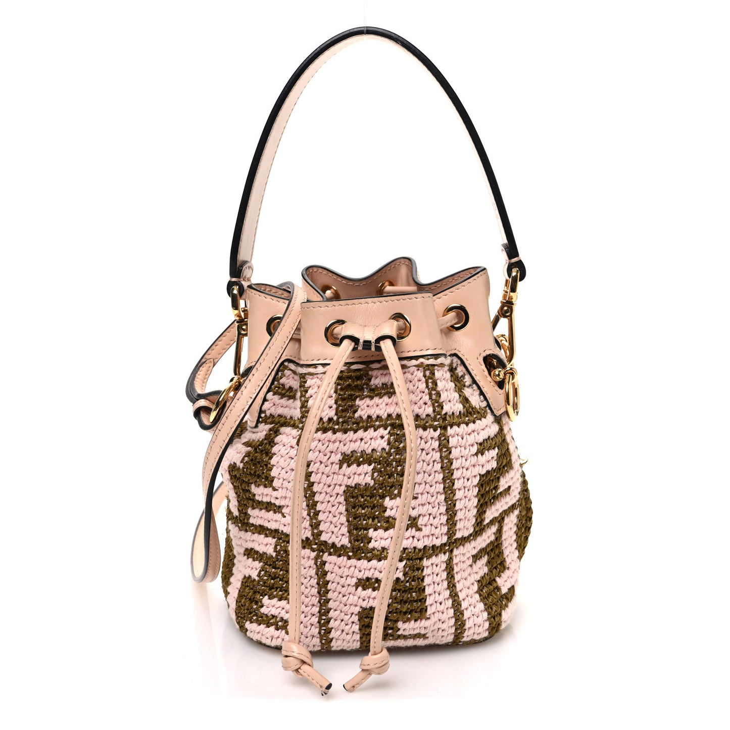 Raffia Vitello King F is Fendi FF Crochet Mini Mon Tresor Bucket Bag Natural Light Rose