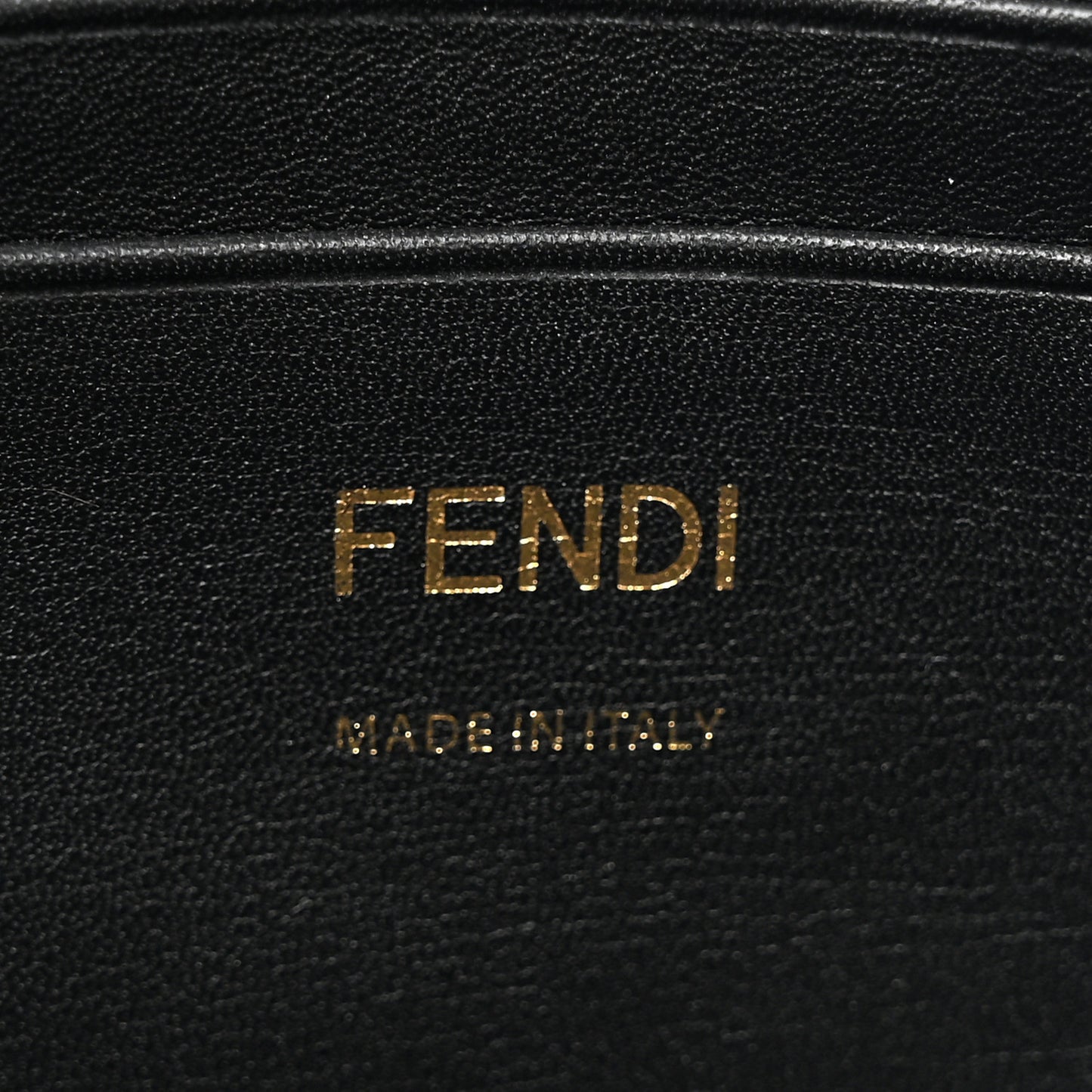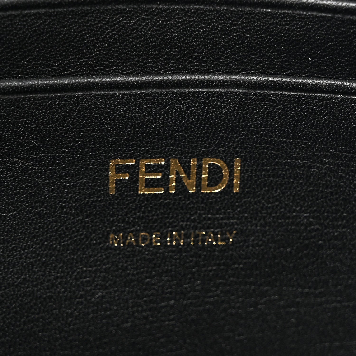 Fendi/ Bags/ Shoulder Bags /Fendi Shearling Vitello Dolce Macro FF 1974 Mini Baguette Tobacco Black