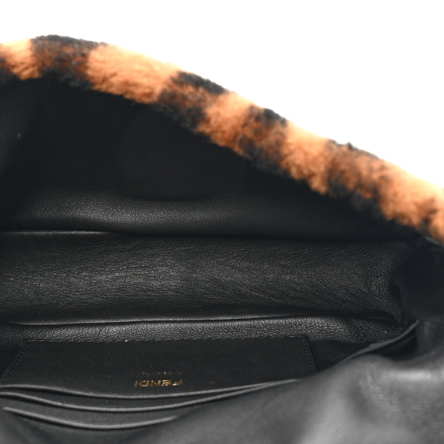 Shearling Vitello Dolce Macro FF 1974 Mini Baguette Tobacco Black