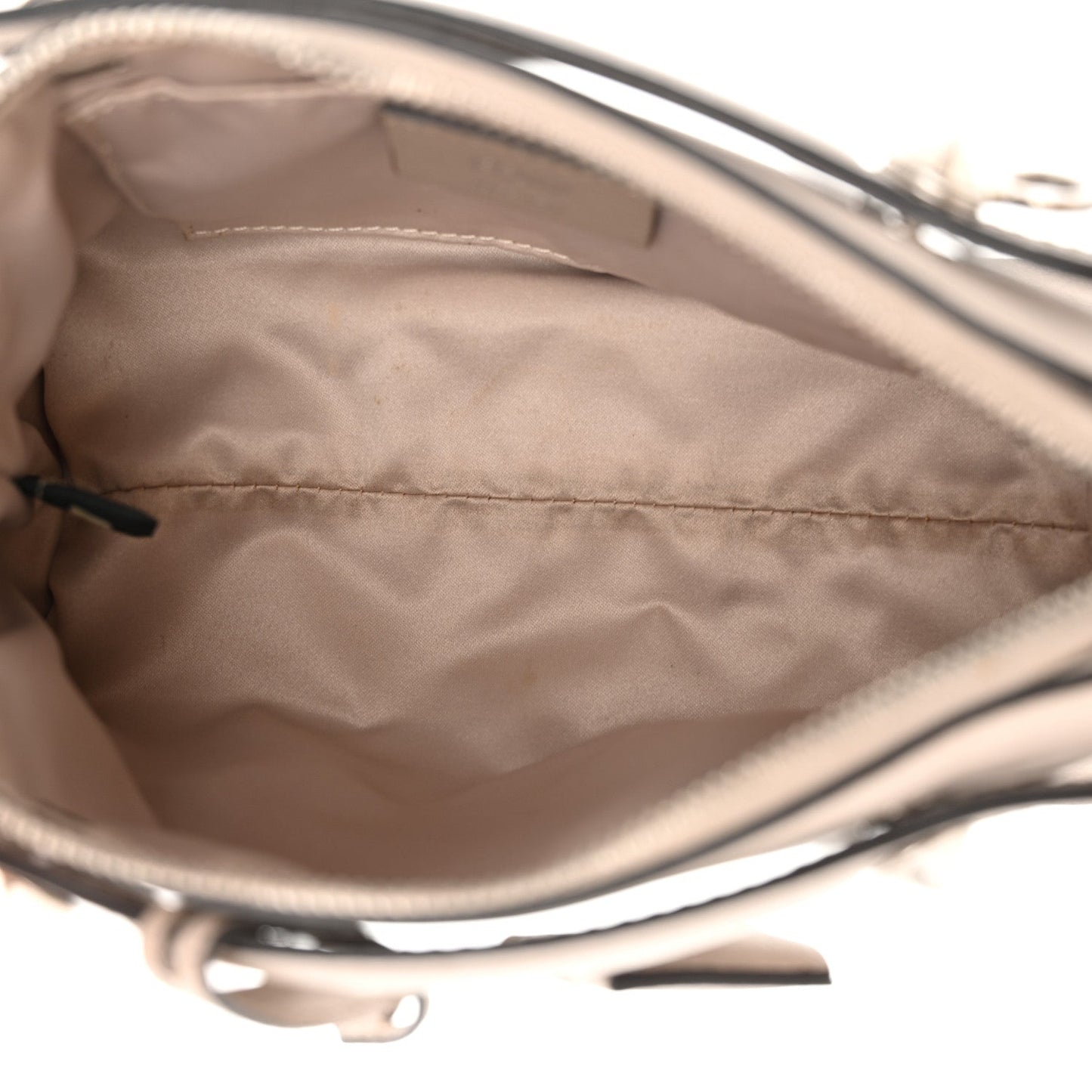 This is an authentic FENDI Calfskin Crystal Mini By The Way Tote in Grigio Polvere. This chic satchel is finely crafted of calfskin leather in soft light grey. The shoulder bag features leather strap top handles with large cone marbled studs and a crossbody shoulder strap with adjustable silver snaps. There is an over-extending top zipper encrusted with crystals that opens to a matching fabric interior with a patch pocket.Follow this item for alerts. Fendi is a registered trademark of Fendi. FASHIONPHILE is not affiliated with Fendi.