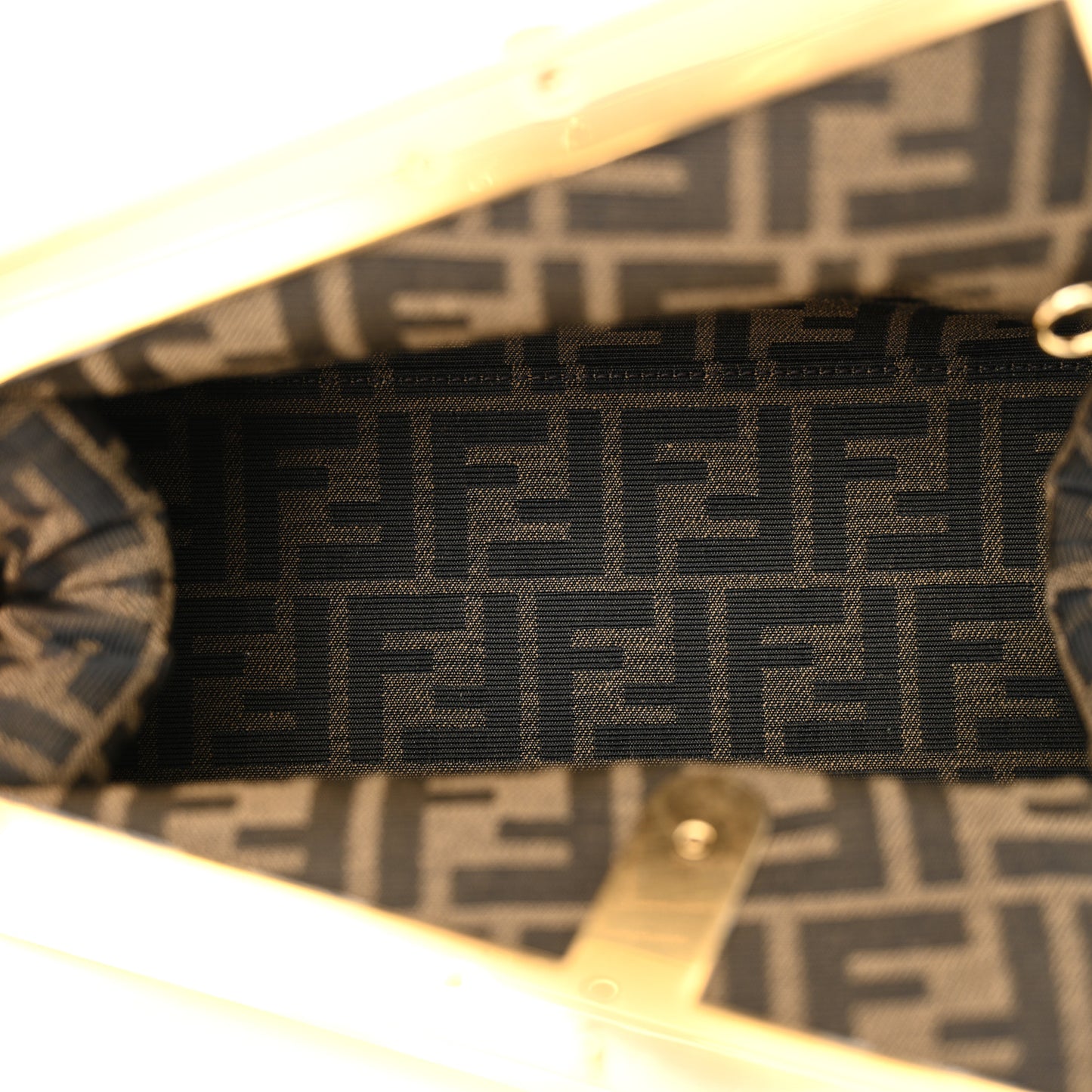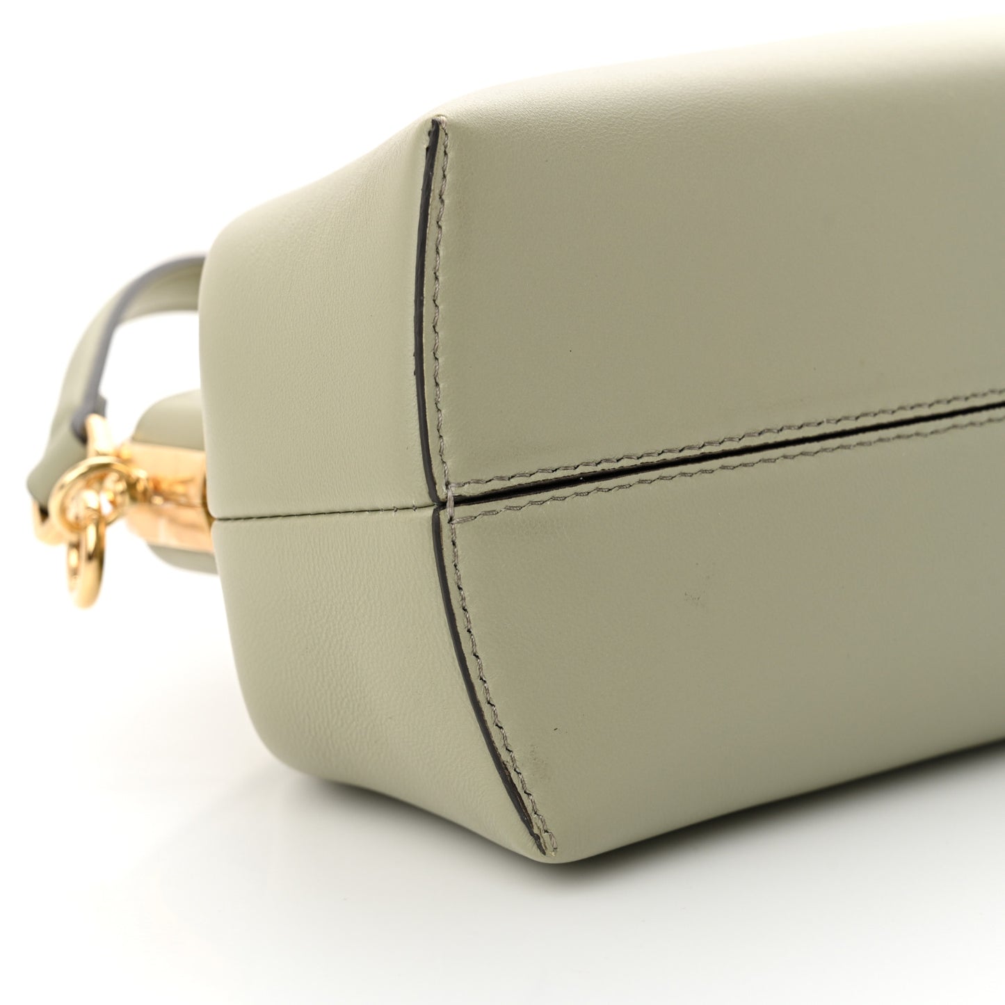 This is an authentic FENDI Shiny Nappa Midi Fendi First in Green Tea. This bag is crafted of lambskin leather in green. It features a matching optional shoulder strap with polished gold-tone hardware. The top opens with a prominent hinged, gold-tone Fendi logo detail to a spacious interior. The bag is lined with the signature Fendi FF fabric jacquard motif.Follow this item for alerts. Fendi is a registered trademark of Fendi. FASHIONPHILE is not affiliated with Fendi.
