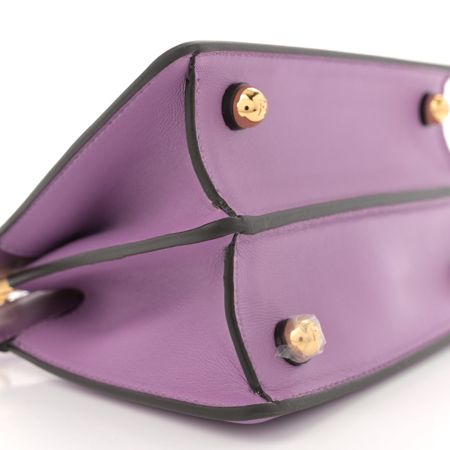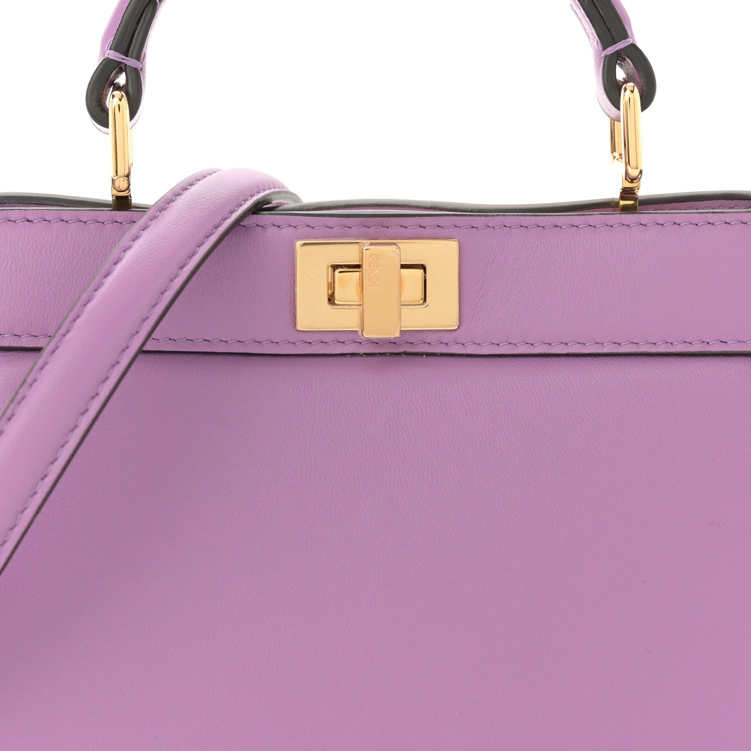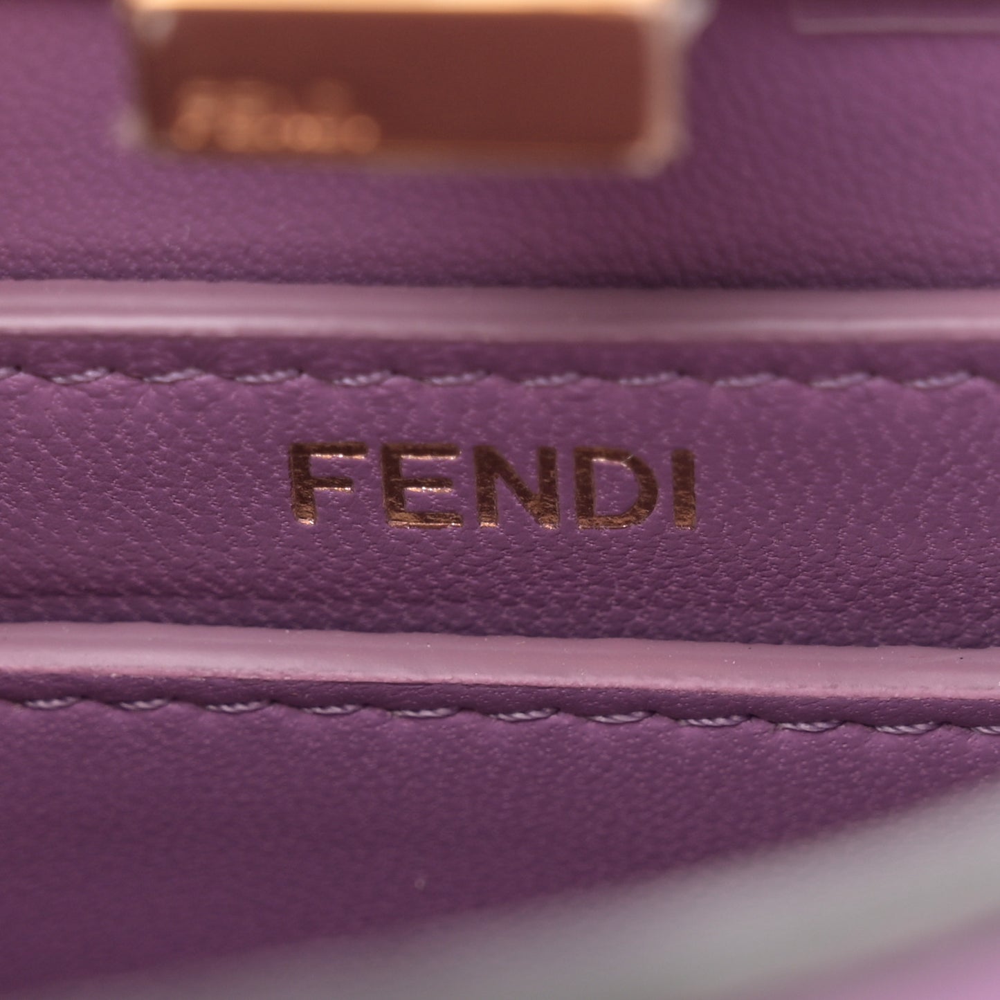 This is an authentic FENDI Shiny Nappa Petite Peekaboo I SEE U Satchel in Violetta. This chic tote is finely crafted of smooth padded calfskin leather in purple. This mini-sized bag features a leather top handle, adjustable, optional leather shoulder strap with gold hardware including squared turn locks on either side. This opens to reveal a leather interior with a patch pocket.Follow this item for alerts. Fendi is a registered trademark of Fendi. FASHIONPHILE is not affiliated with Fendi.