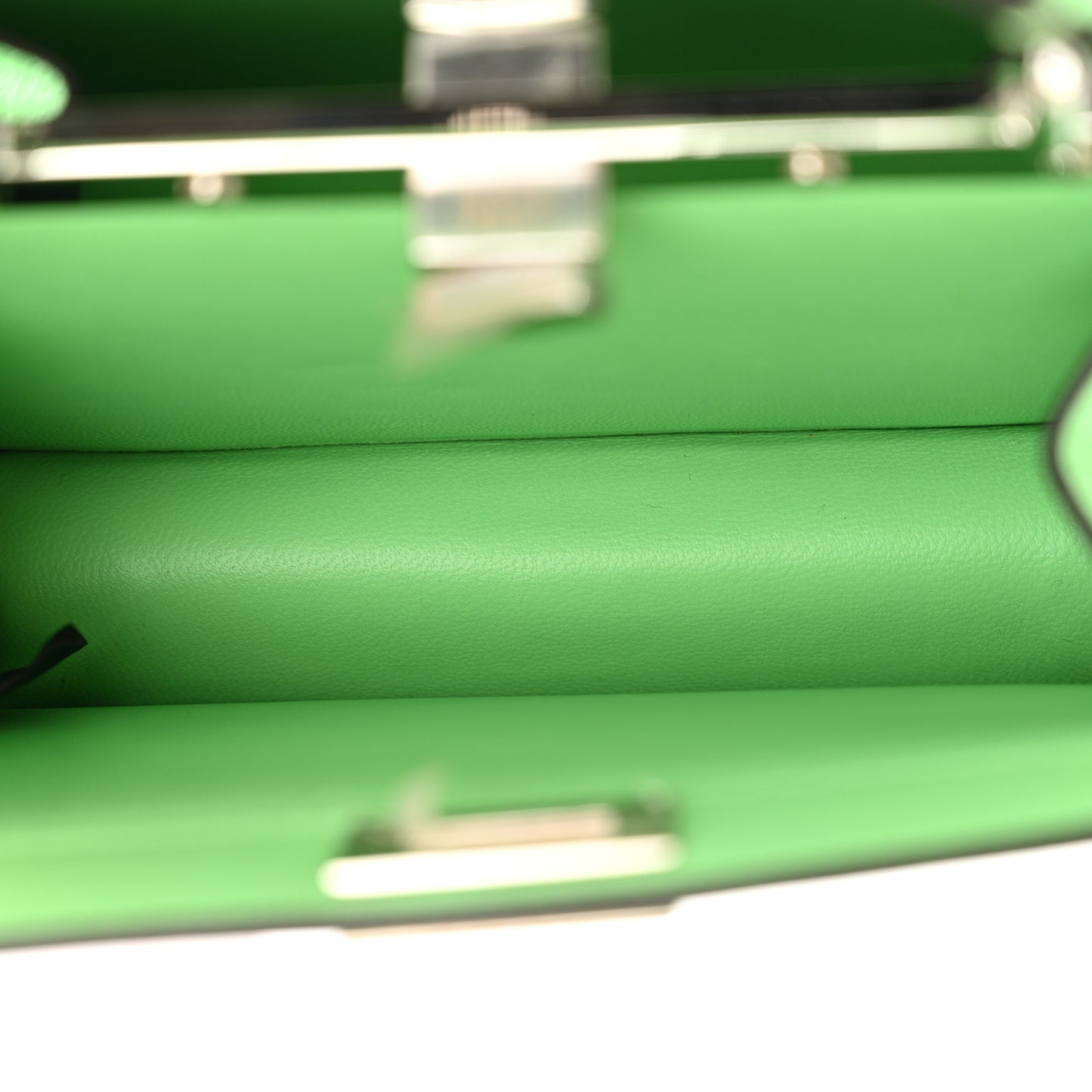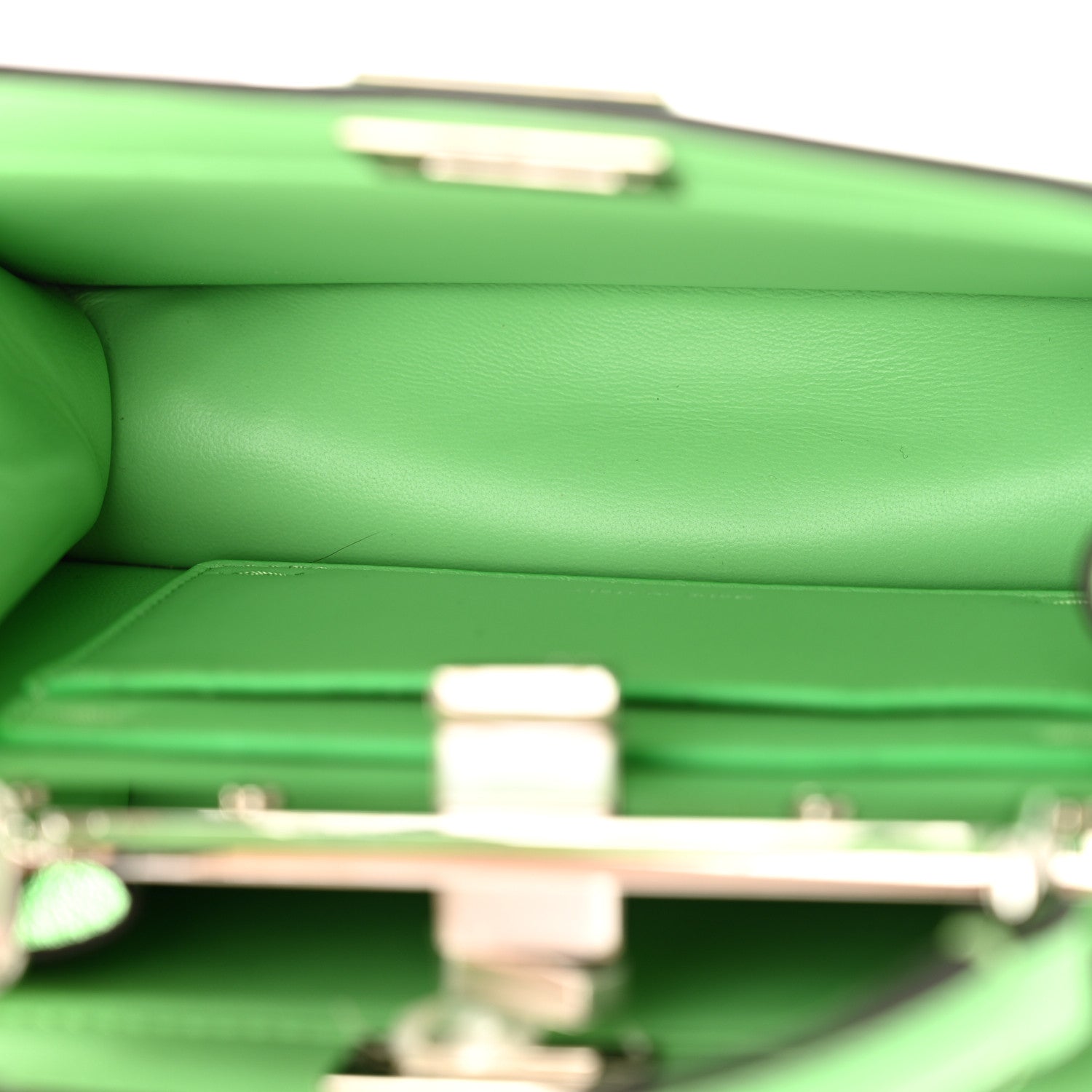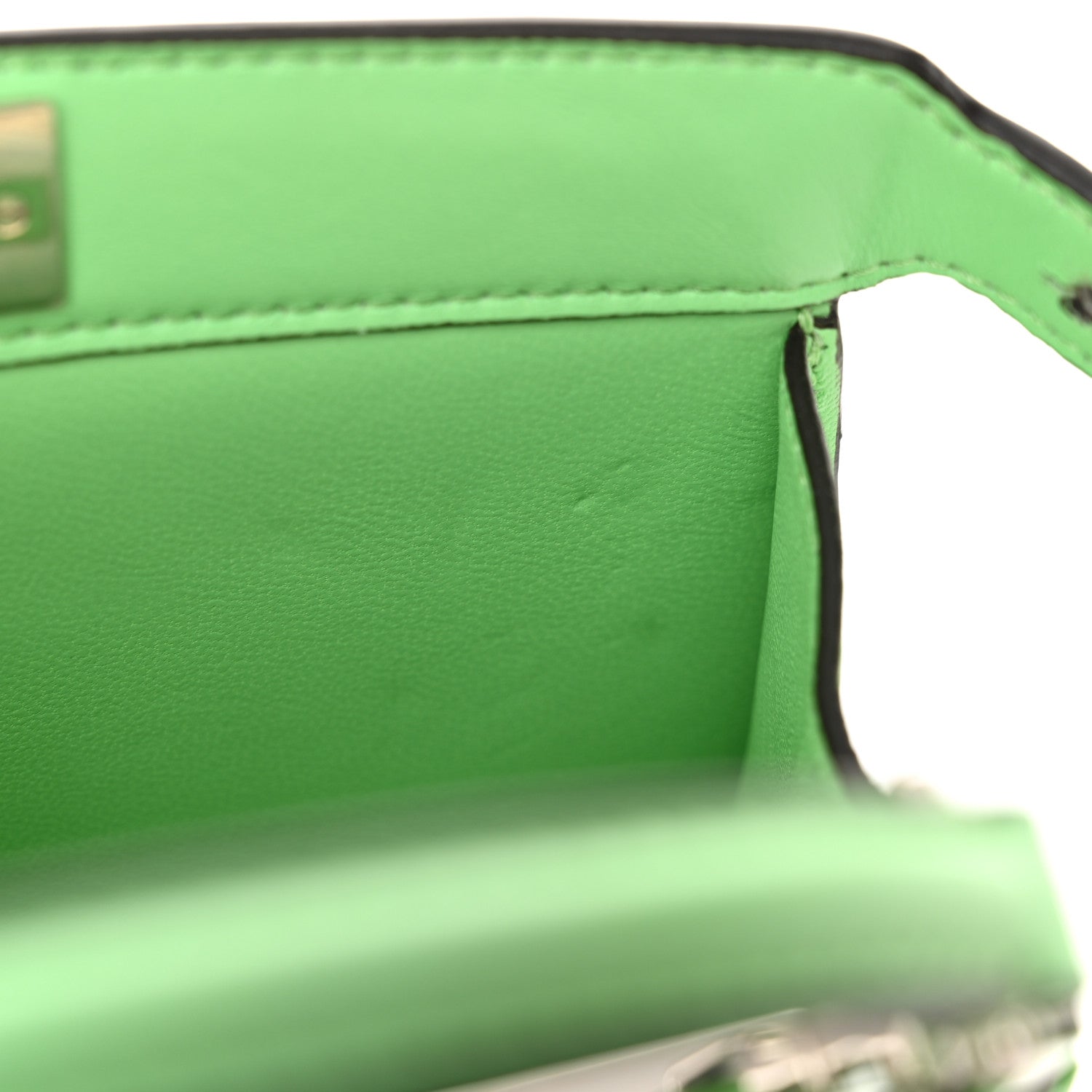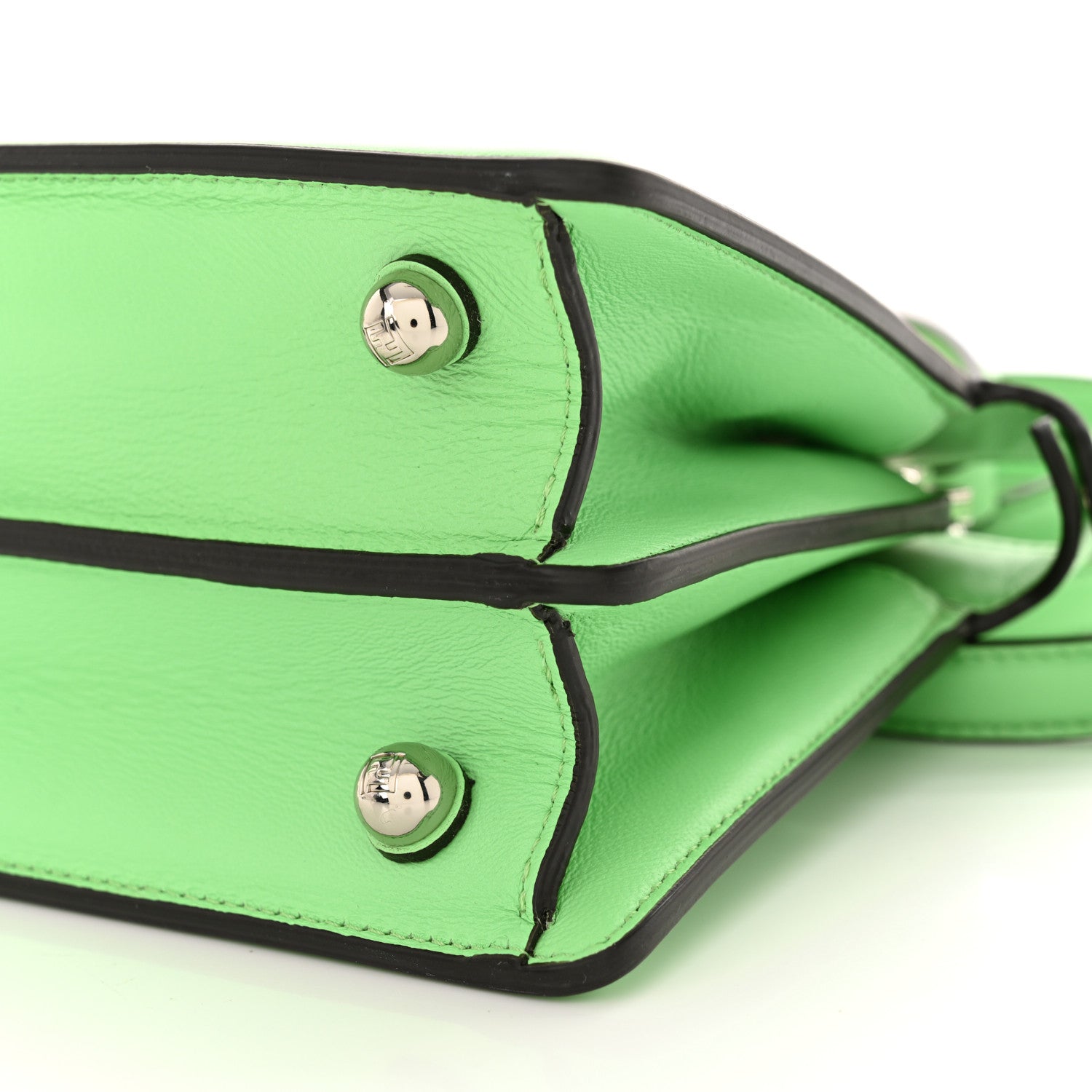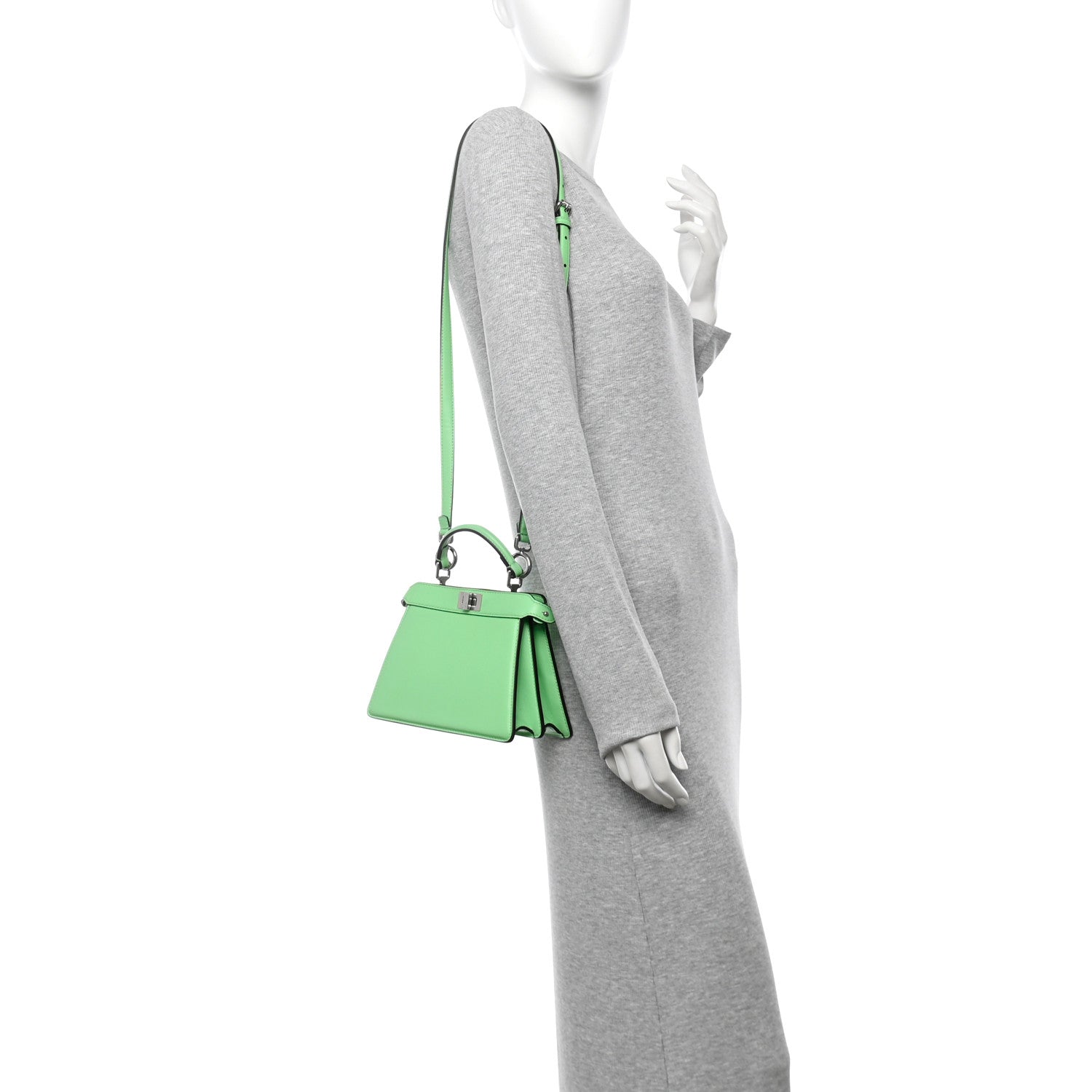 This is an authentic FENDI Shiny Nappa Petite Peekaboo I SEE U Satchel in Edamame. This chic tote is finely crafted of smooth padded calfskin leather in green. This mini-sized bag features silver squared turn locks on either side.Follow this item for alerts. Fendi is a registered trademark of Fendi. FASHIONPHILE is not affiliated with Fendi.
