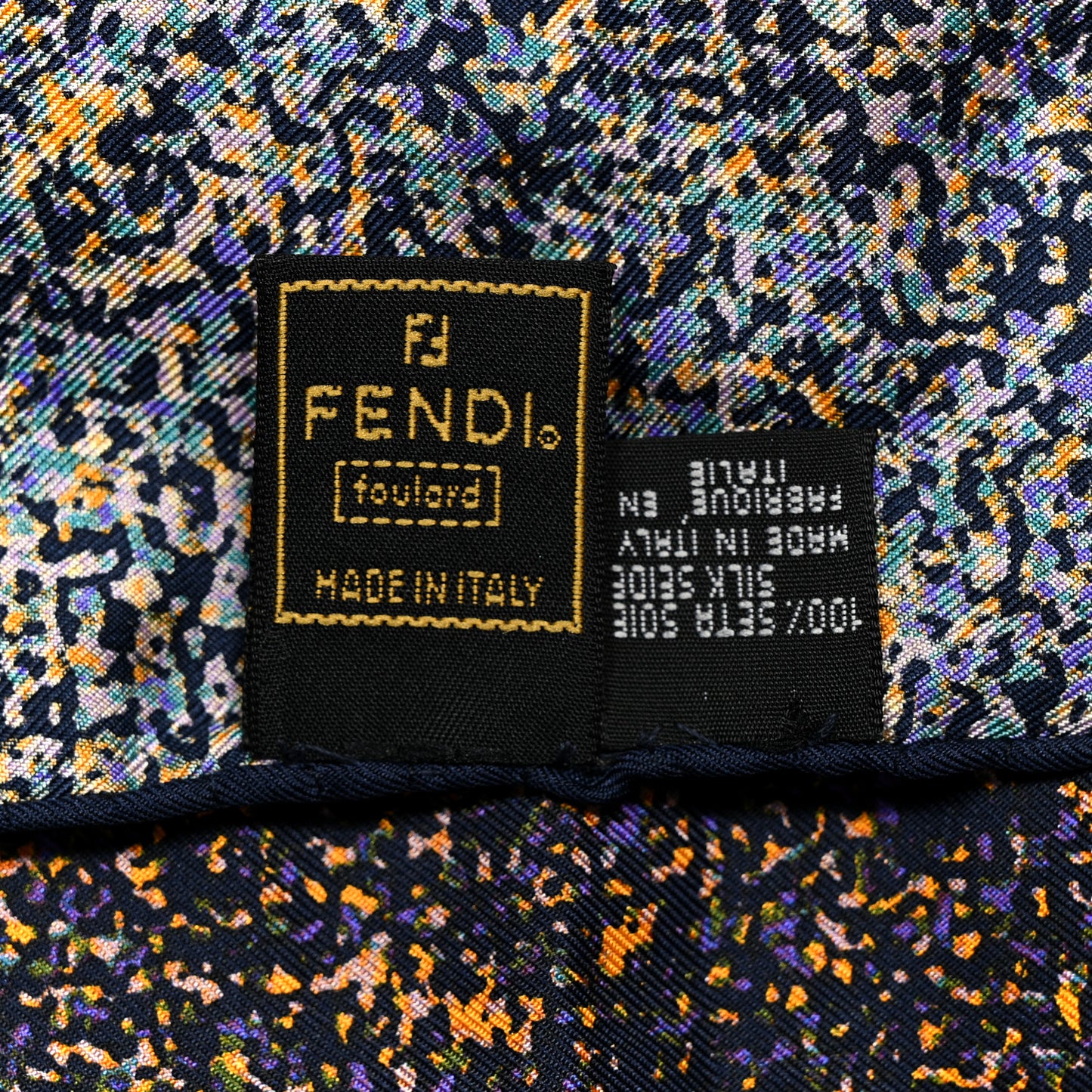 This is an authentic FENDI Silk Galaxy Foulard Scarf in navy. This 100% silk scarf features a colorful background with a navy 'F'.Follow this item for alerts. Fendi is a registered trademark of Fendi. FASHIONPHILE is not affiliated with Fendi.