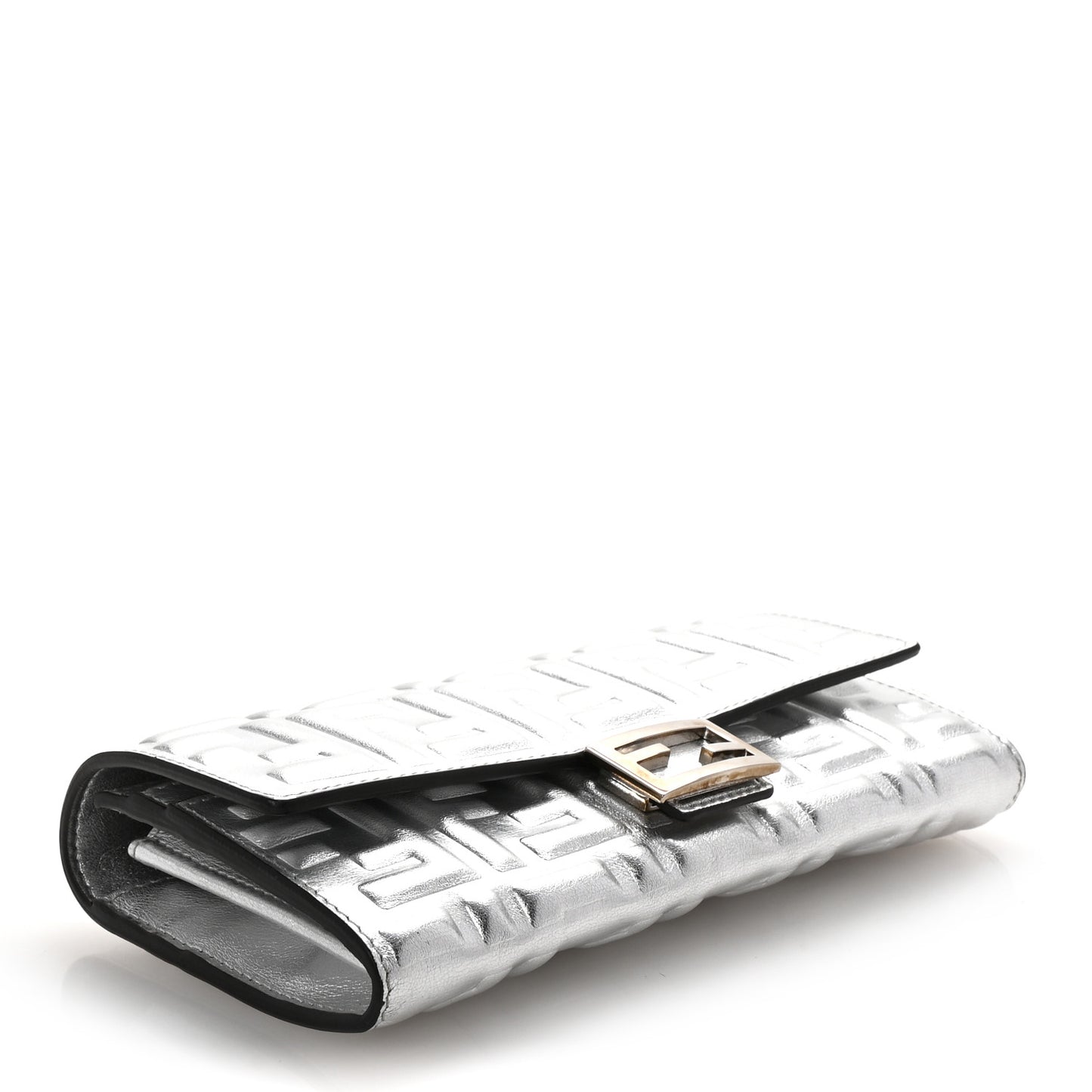 Fendi/ Bags/ Accessories /Fendi Vitello Catalan Mirror FF 1974 Embossed Continental Wallet Argento
