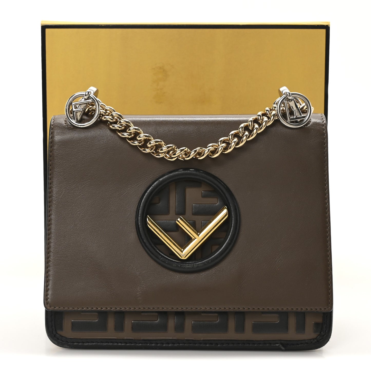 Fendi/ Bags/ Shoulder Bags /Fendi Vitello Century F is Fendi Bi-Color FF 1974 Embossed Small Kan I Shoulder Bag Maya Black