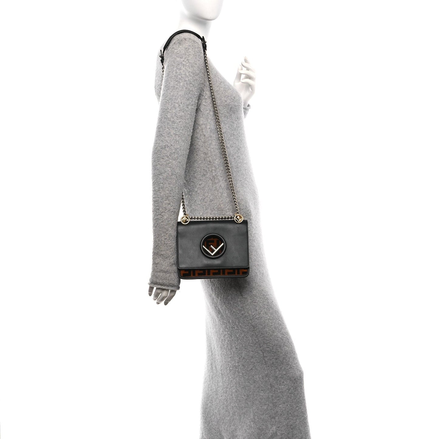 Fendi/ Bags/ Shoulder Bags /Fendi Vitello Century Velvet F is Fendi FF Small Kan I Shoulder Bag Black Tobacco